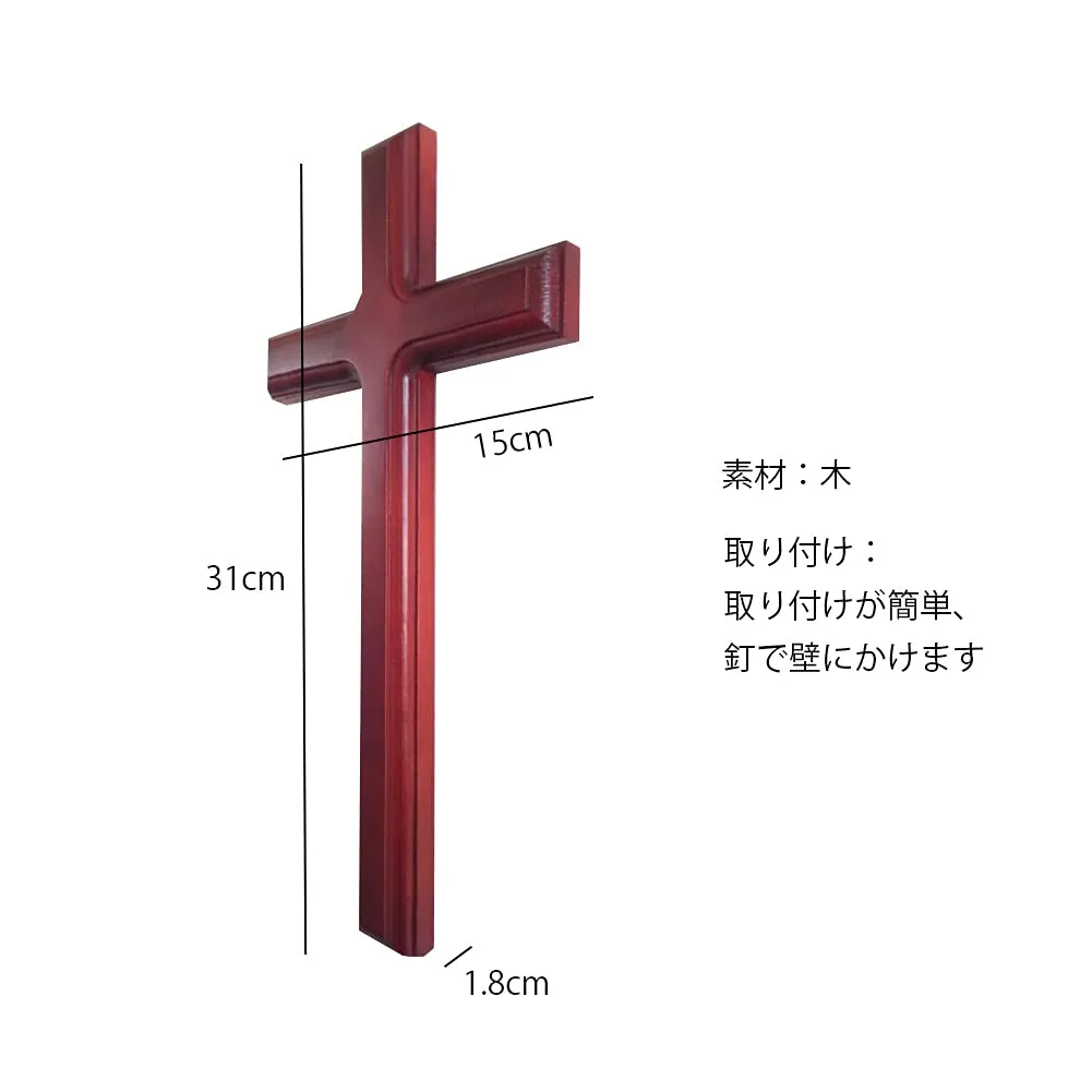 ?仕様:壁掛け装飾用十字架。素材:木。サイズ:31*15*1.8cm。パッケージに含まれる物:十字架*1(くぎ付き)。