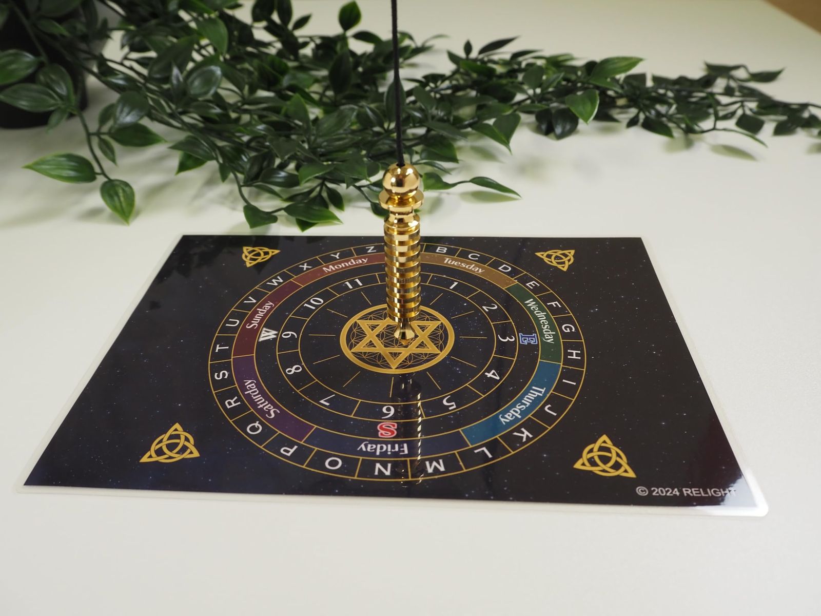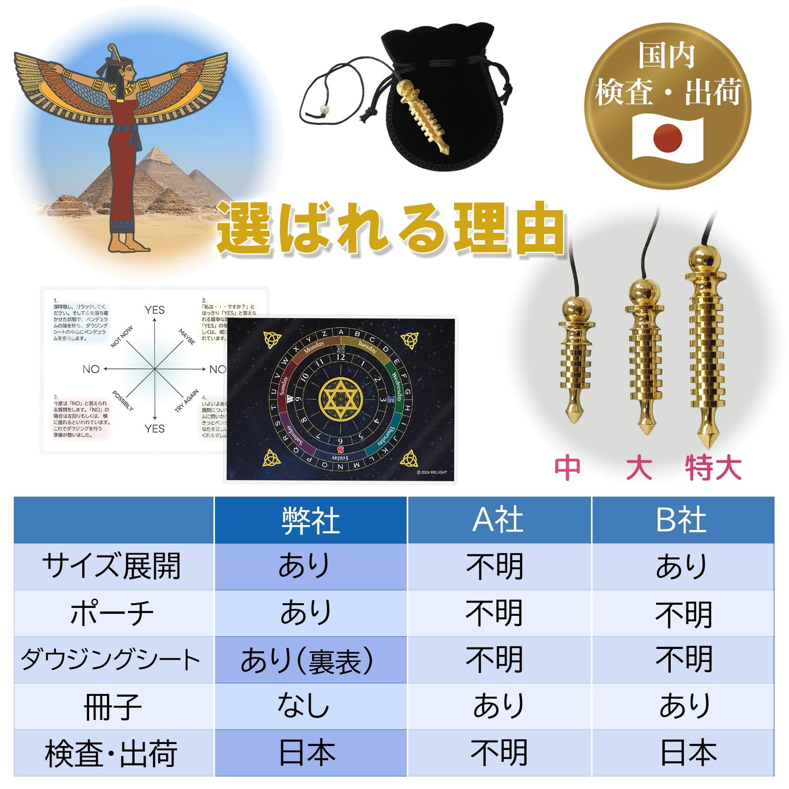RELIGHT ペンデュラム ダウジング 金属製 イシス 占い スピリチュアル 風水 グッズ 振り子 ダウジングシート 収納袋 付 (ゴールド 特大 8リング)