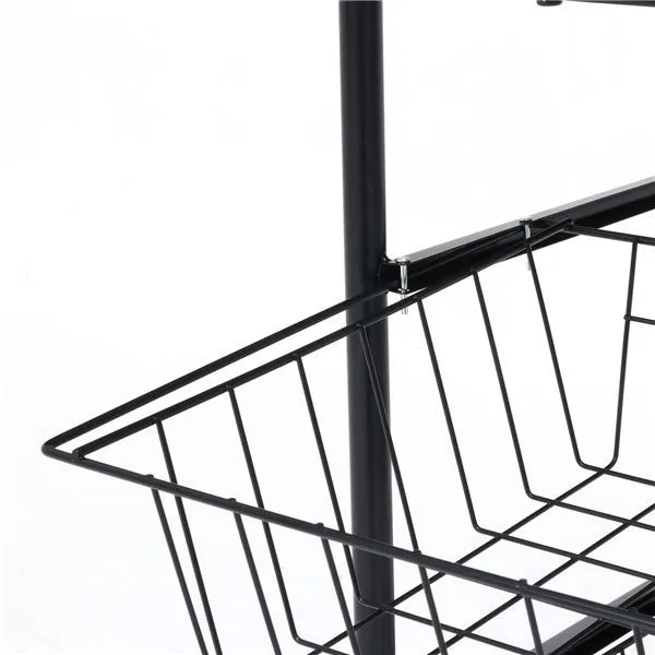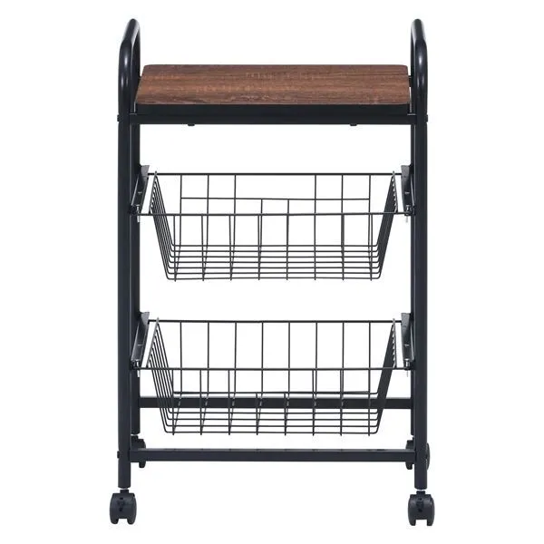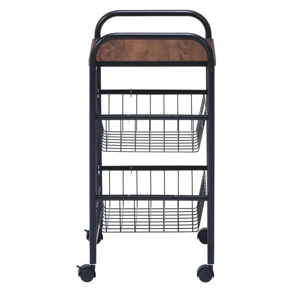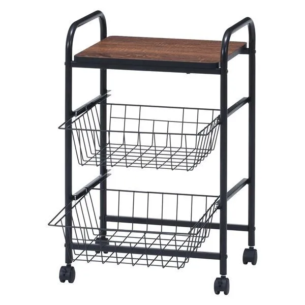 【ポイント14倍!12/5限定】 キッチンワゴン キッチン収納 幅45cm ブラック×ブラウン キャスター付き バスケット付き スチール 組立品 ダイニング 台所