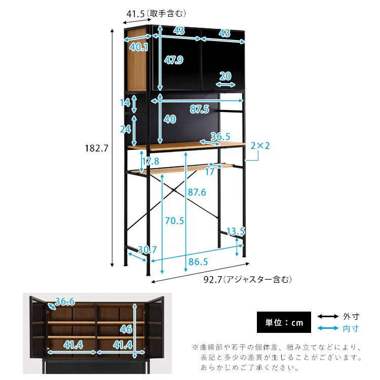 【サイズ】 (約)幅92.7×奥行41.5×高さ182.7cm