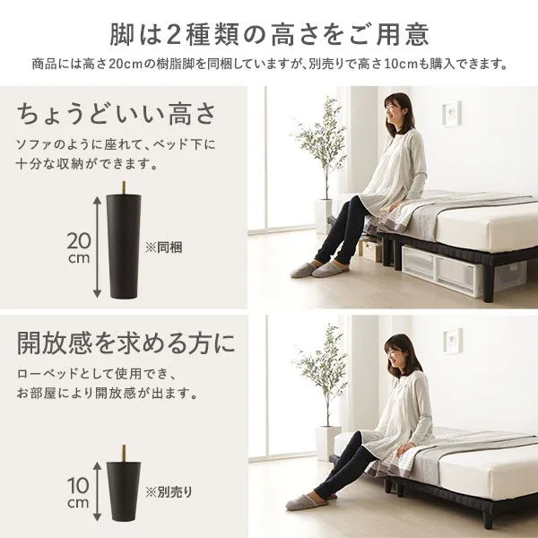 【ポイント14倍!12/5限定】 ベッド 脚付き シングル 国産ポケットコイルマットレス付き(ハード) ブラック ボトムベッド 簡単組立 20cm 高脚 ハイタイプ シンプル 組立品