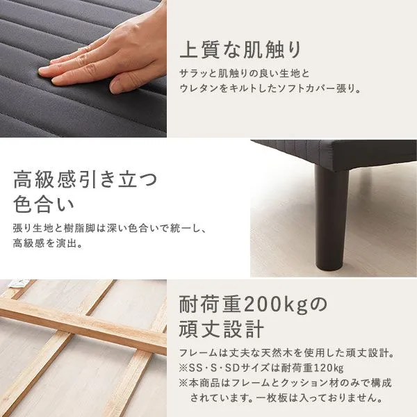 ■サイズ(約) セミシングル:幅80×長さ195×高さ27cm シングル:幅97×長さ195×高さ27cm セミダブル:幅120cm×長さ195×高さ27cm ダブル:幅140×長さ195×高さ27cm クイーン(SS+SS):幅160×長さ195×高さ27cm キング(SS+S):幅177×長さ195×高さ27cm 床面までの高さ:27cm ※セミシングル・シングル・セミダブルはフレーム2分割、ダブル・クイーン・キングはフレーム4分割となります。