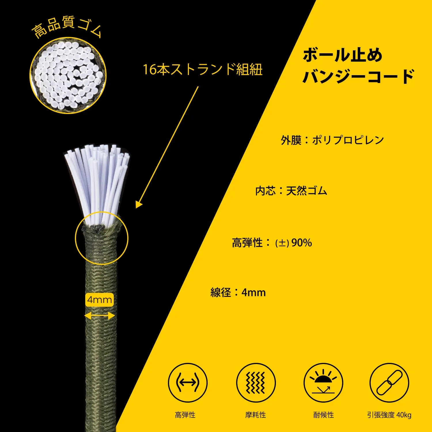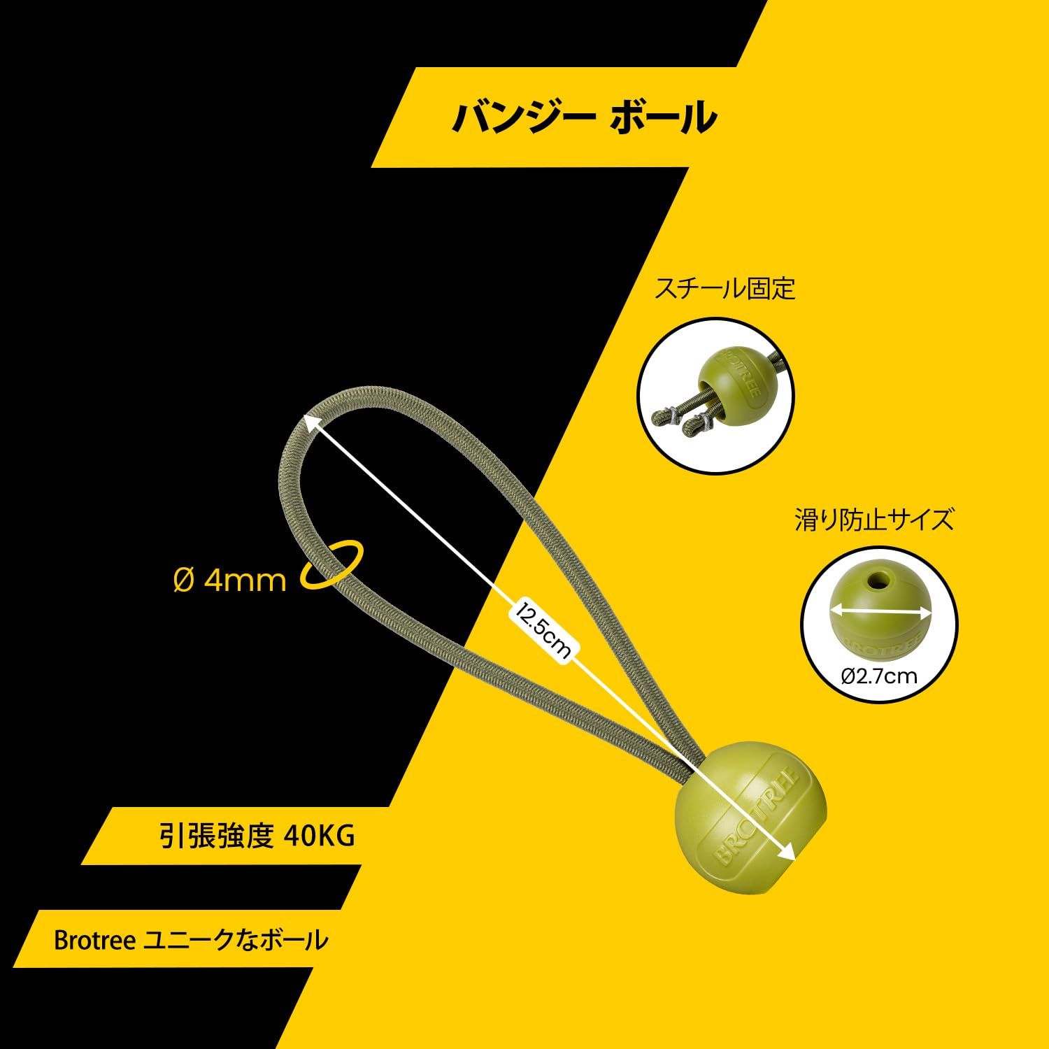 【耐久性と耐荷重】ボール付きバンジーコードはゴム製のバンジーループが中空のプラスチックボールの中に結び付けます。中芯:天然ゴム、被覆:プレミアムポリプロピレンで作られており、耐紫外線、耐腐食、長持ちする弾性ロープです。最大の破断力40kgに達しています。 ?