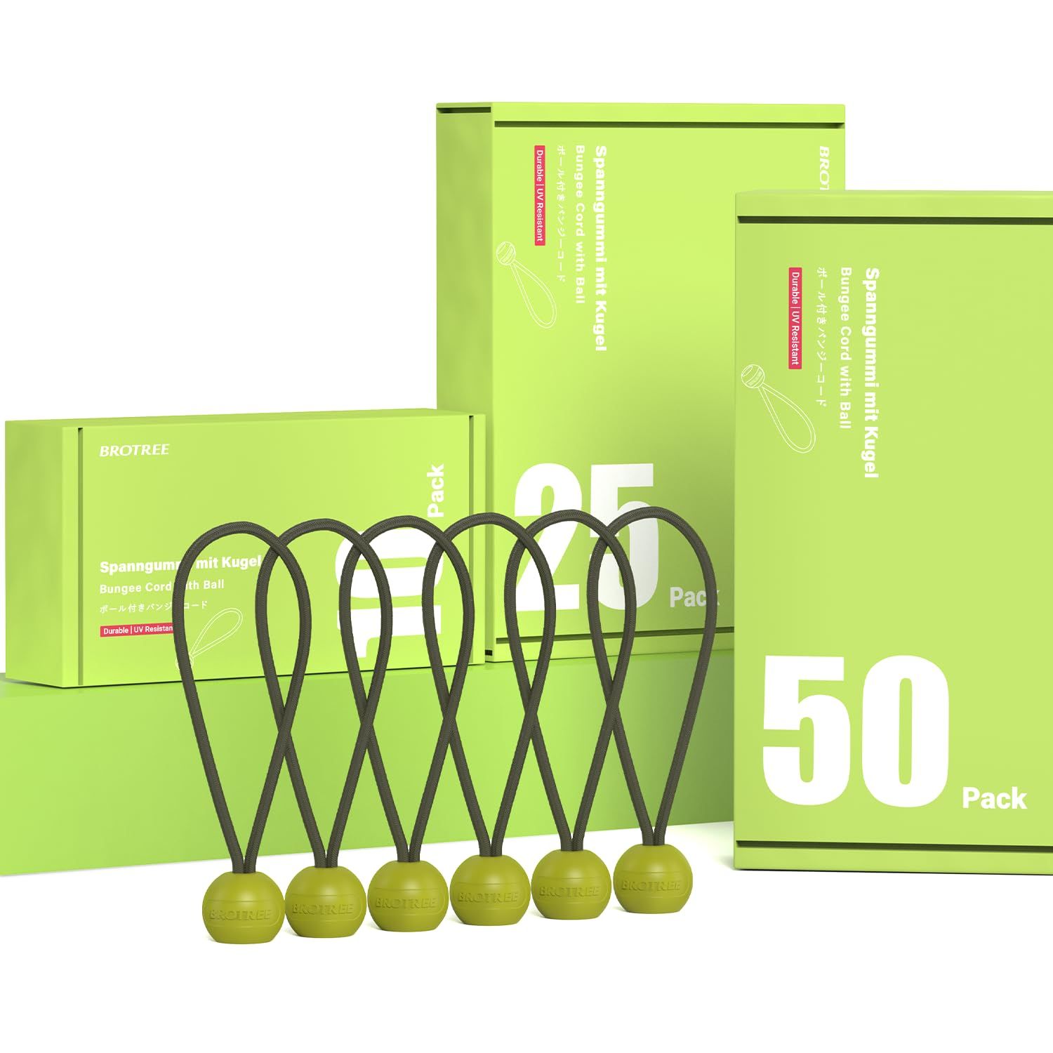 Brotree ボール止めバンジーコード 線径4mm 全長12.5cm 25本セット 玉付き ゴム紐 ゴムバンド ボールバンジー ショックコード 固定 結束 荷台シート サンシェード キャンプ テント用-アーミーグリーン