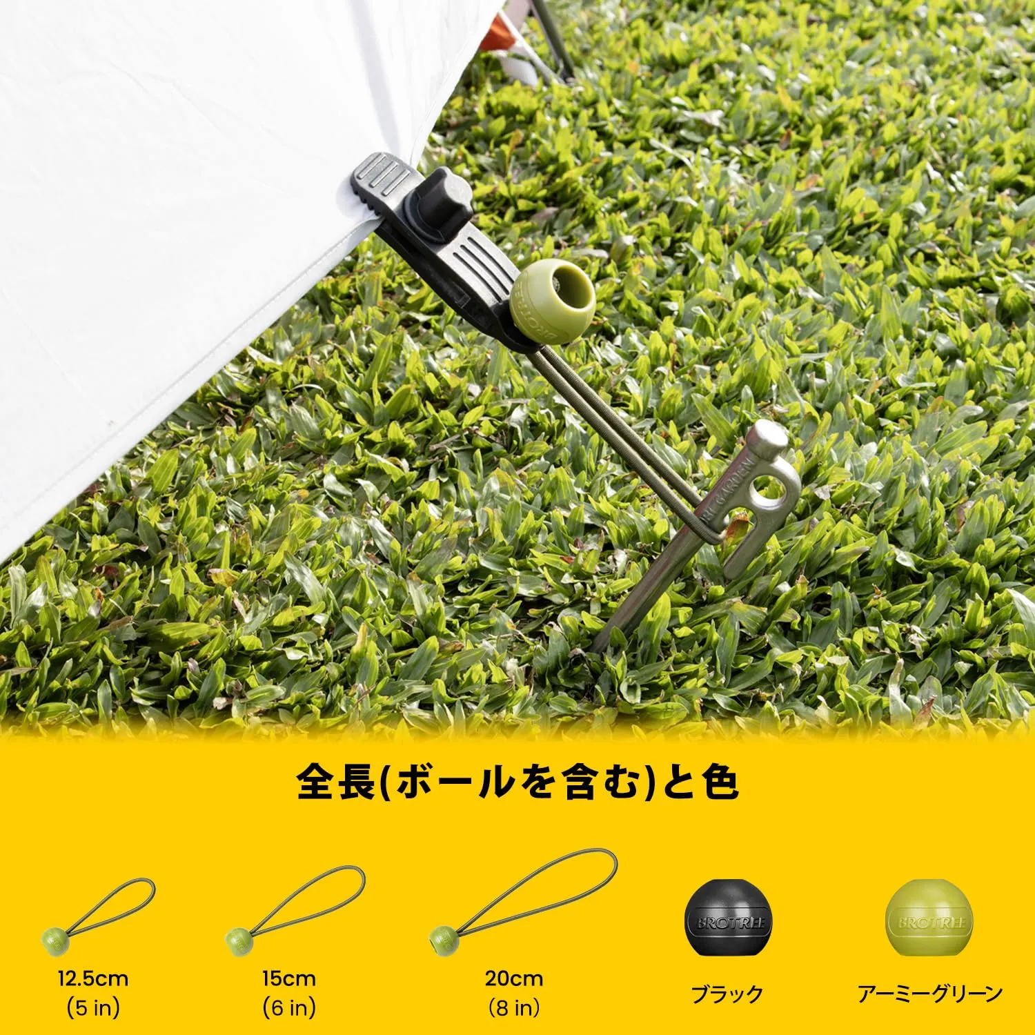 新品 Brotree ボール止めバンジーコード 線径4mm 全長12.5cm 25本セット 玉付き ゴム紐 ゴムバンド ボールバンジー ショックコード 固定 結束 荷台シート サンシェード キャンプ テント用-アーミーグリーン