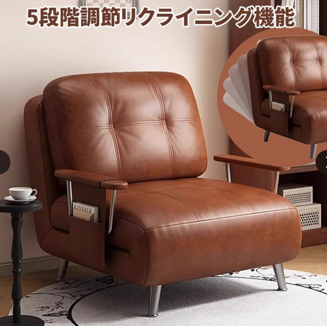 大好評☆ソファベッド 折りたたみ 3WAY クッション付 ソファー 2人掛け 1人掛け 5段階調整 オイルレザー生地 カウチソファー 肘掛け付き リクライニTaka Neko