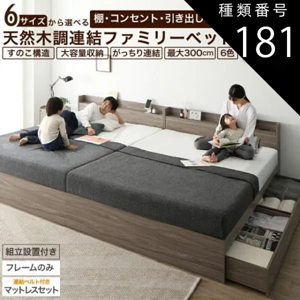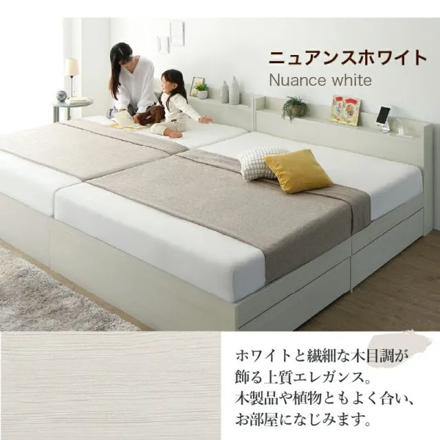 種類181:WK200(S+S)/ホテルプレミアムマットレス付/フォググレー/ホワイト ベッド 連結ベッド 収納ベッド ファミリーベッド 連結 ベッドフレーム マットレス付き 収納付き グレー 白 黒 宮付 おしゃれ 2コンセント付 すのこ ファミリー フレー