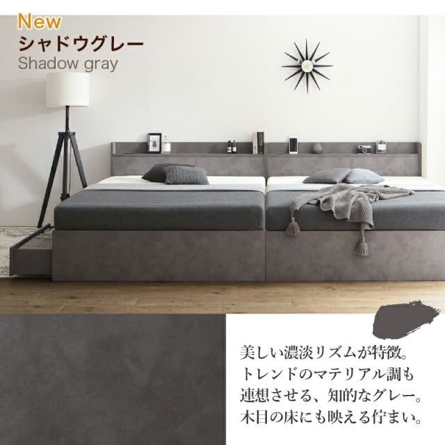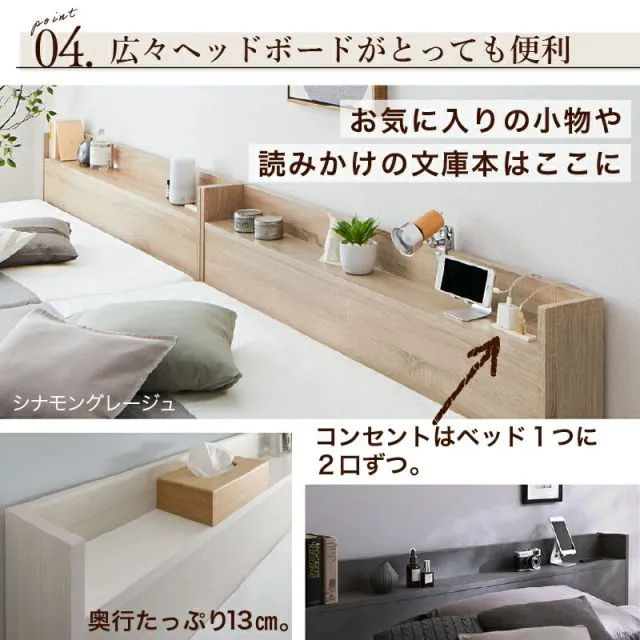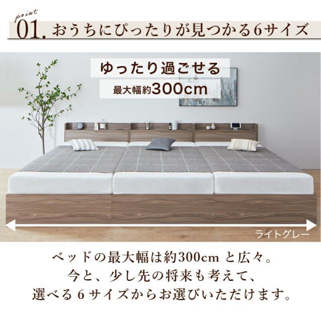種類214:WK300(S+S+S)/ホテルプレミアムマットレス付/シナモングレージュ/ホワイト ベッド 連結ベッド 収納ベッド ファミリーベッド 連結 ベッドフレーム マットレス付き 収納付き グレー 白 黒 宮付 おしゃれ 2コンセント付 すのこ ファミリ