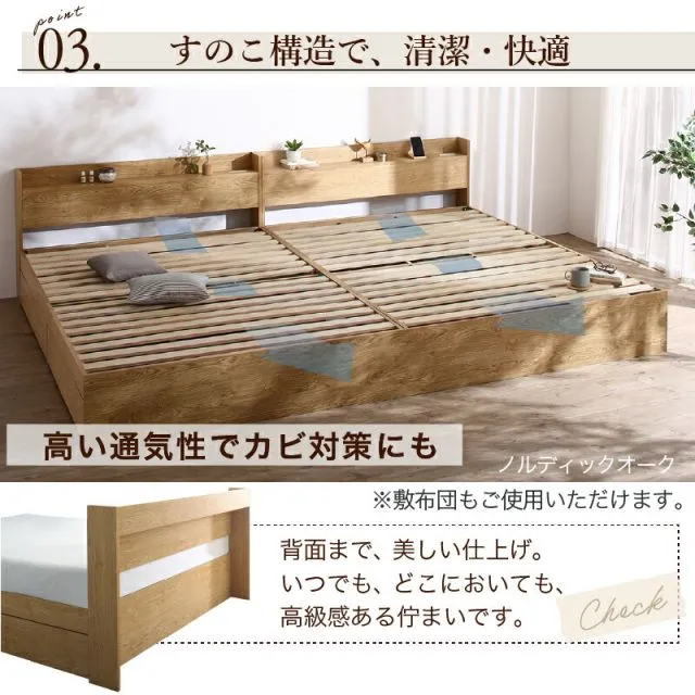 種類216:WK300(S+S+S)/ホテルプレミアムマットレス付/ニュアンスホワイト/ホワイト ベッド 連結ベッド 収納ベッド ファミリーベッド 連結 ベッドフレーム マットレス付き 収納付き グレー 白 黒 宮付 おしゃれ 2コンセント付 すのこ ファミリ