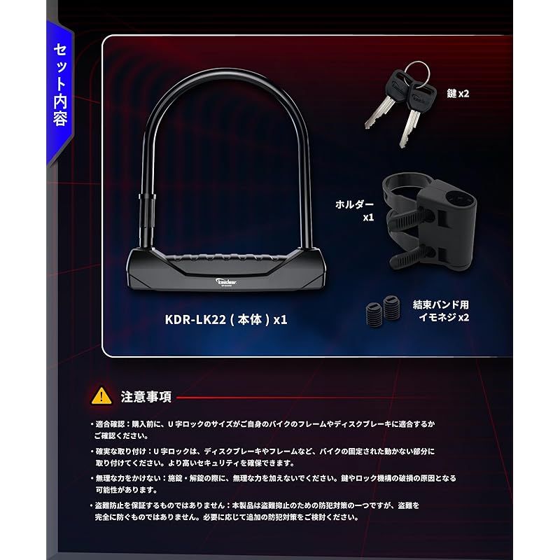 Kaedear(カエディア) バイク ロック U字ロック ワイド 鍵 チェーン 高耐久 シリンダー 盗難防止 キー 紛失 複製サービス SP_GUARD - Type-U WIDE KDR-LK22 0
