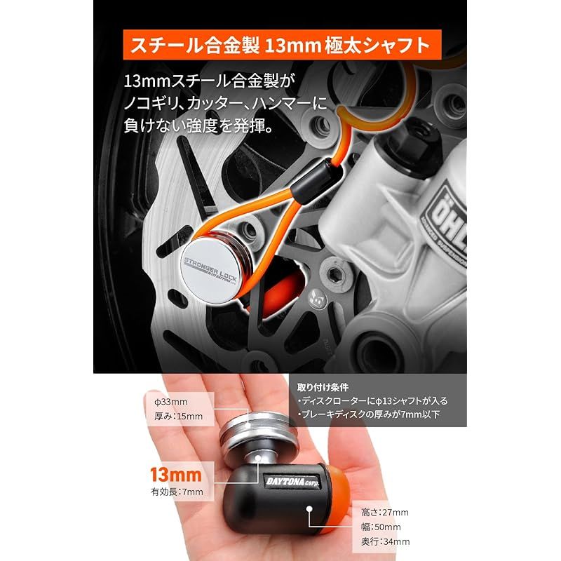 デイトナ(Daytona) バイク用 ディスクロック 直径13mmシャフト 鍵穴シャッター スパイラルケーブル付属 ストロンガーディスクロック 0