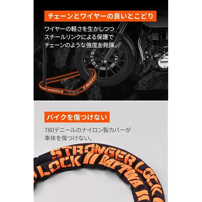デイトナ(Daytona) バイク ロック ワイヤーロック φ20mm 鍵が増えない ストロンガースチールリンク ダイヤルタイプ 1800mm 1