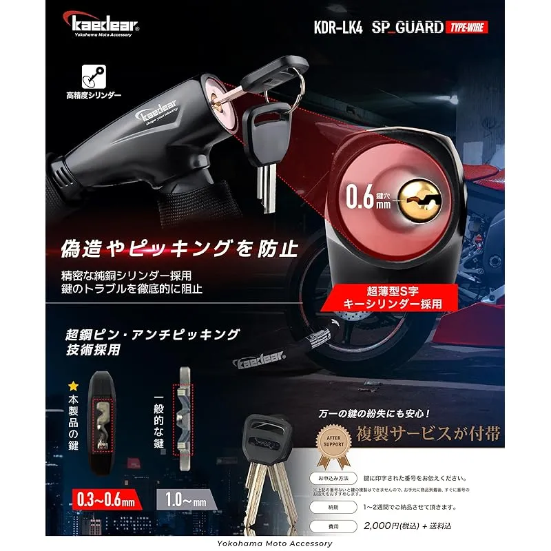 【防犯性】 一見キーは一般的なピンタンブラー錠に見えますが、超極薄0.6mmの鍵穴とS字形状などのアンチピッキング技術が採用されています。キーナンバーをお控え頂き、ご要望があれば1~2週間で複製しお届けする別途サービスを行っております。