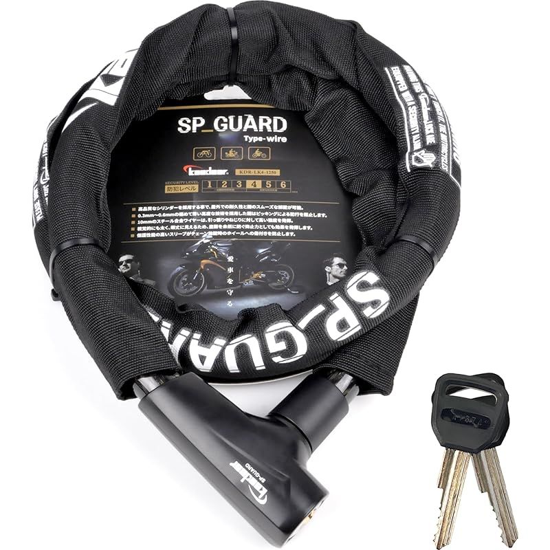 Kaedear(カエディア) バイク ロック ワイヤーロック 鍵 長さ1250mm 外径22mm ワイヤー径10mm 高耐久 シリンダー 盗難防止 キー 紛失 複製サービス KDR-LK4-1250-BK (ブラック, 1250mm) 1