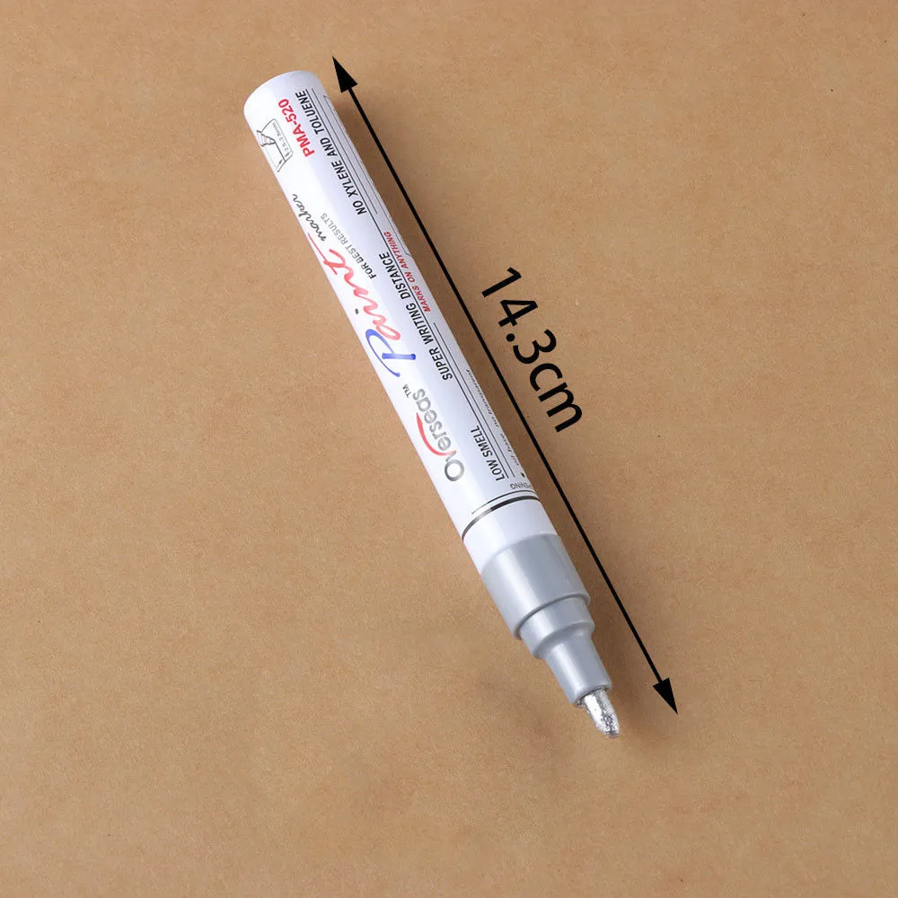 黒 車のスクラッチ修理に欠かせない!タッチアップタイヤマーカー カーペイントペンのご紹介です。ライン幅は約2.2~2.8ミリメートルと細く、ペンの長さは14.3センチメートルと使いやすさ抜群。スクラッチ修理に必要なカーペイントの色をタイヤマーカーで簡単に塗ることができます。コンパクトなサイズなので持ち運びにも便利です。車の傷やキズを簡単に修復したい方におすすめです。 タッチアップペン 自動車塗装修理 キズ補修 タイヤマーカー 車両ペイント スクラッチリペア ボディーコーティング カー用品 車塗料 タッチペイント 塗装剥がれ修正 車体キズ対策 色補修ペン 車外装メンテ 車両保護 簡単修理 DIYカーケア カラーマーカー ペイントペン 車両色補修 塗料ペン