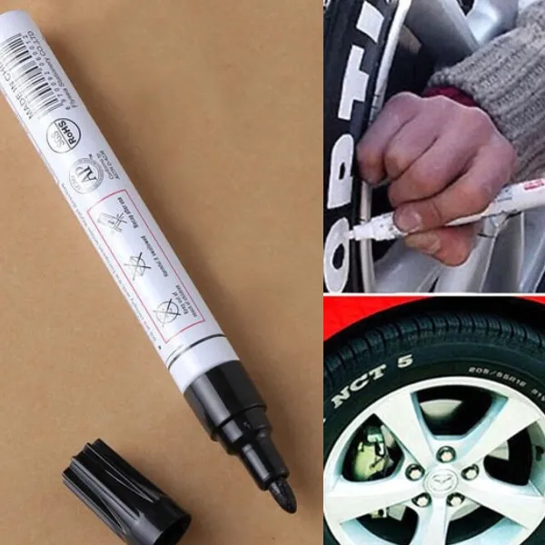 タイヤ マーカー ペン マジック タッチアップ ペイント カー 車 スクラッチ 補修 黒黒P_0