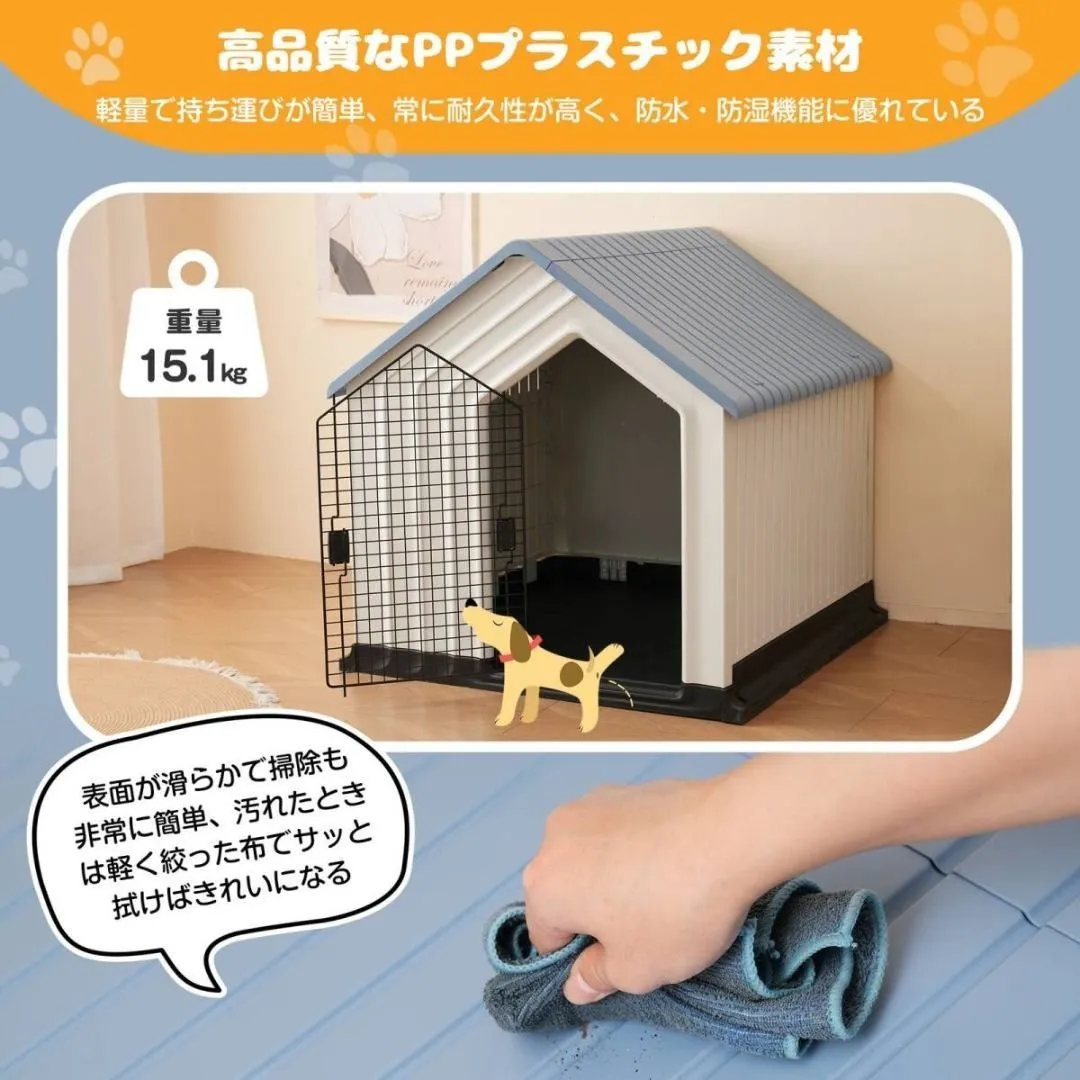 犬小屋 ドア付き ペットハウス ペットケージ プラスチック製 犬 室内犬 室外 オシャレ ボブハウス ペットサークル L ブルー