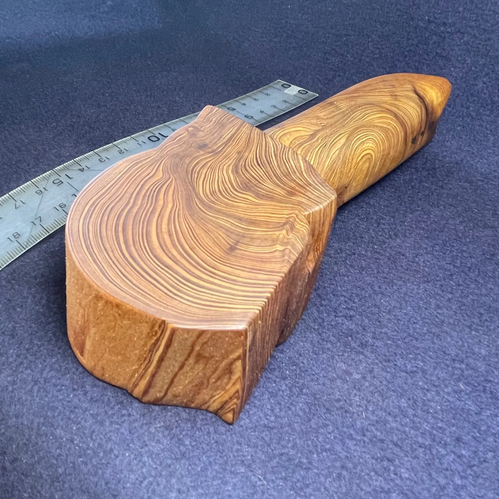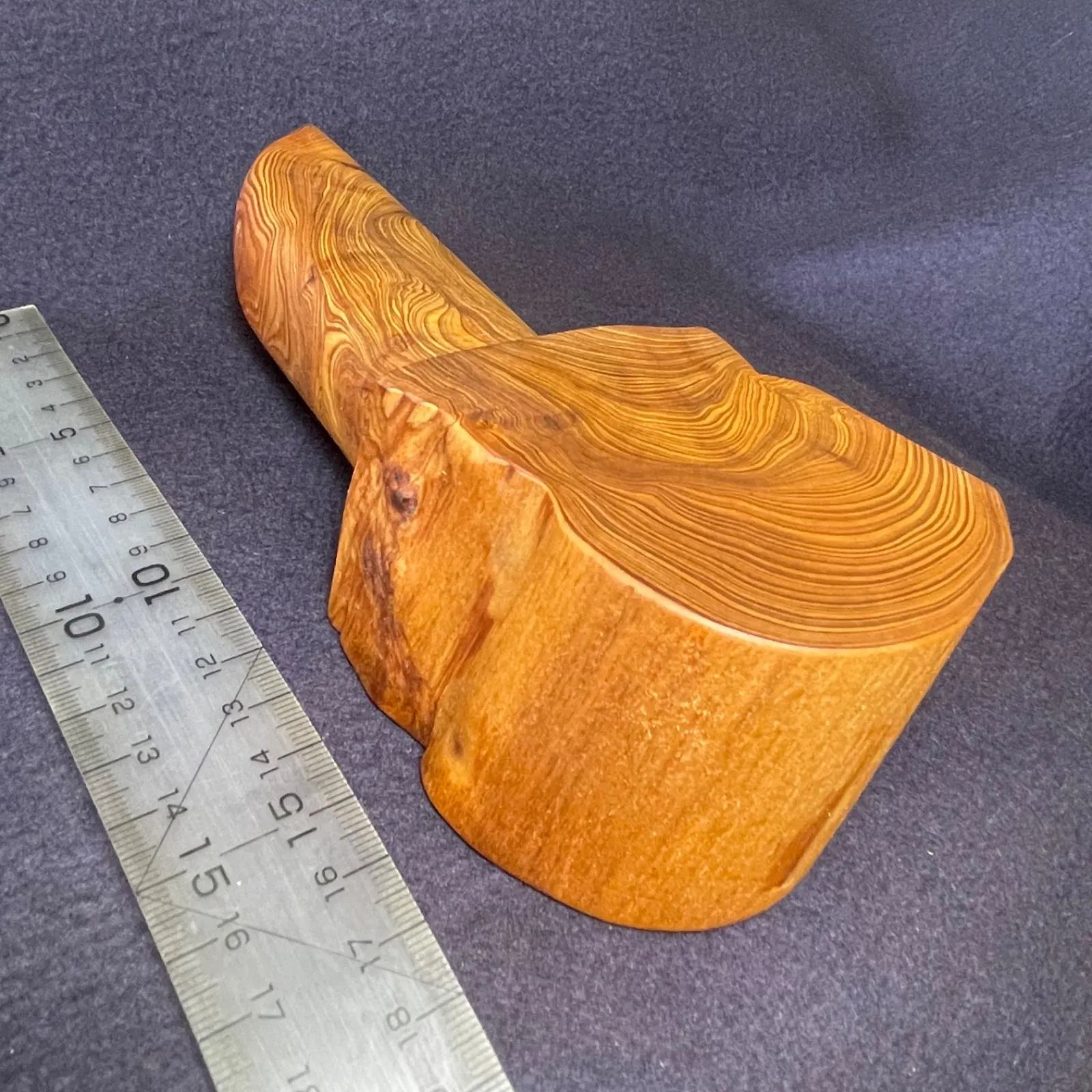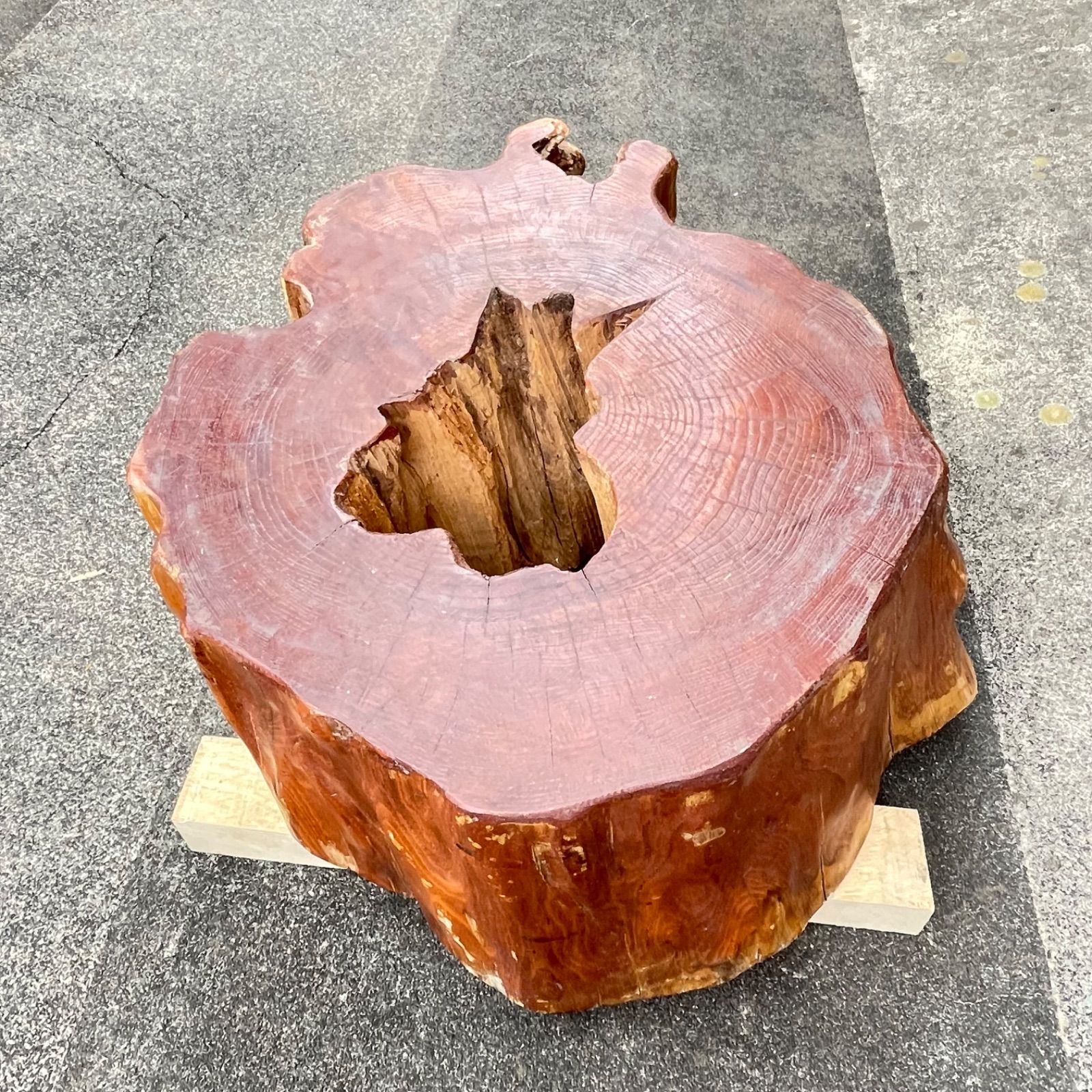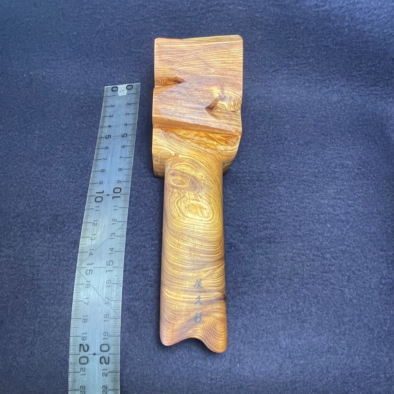 元々の屋久杉の原木の起伏に富んだ形状を極力生かして制作しました。幅の広い両サイドの2面は平面。また、どの部分を使って打撃することも可能です。多種多様な使い方ができます。