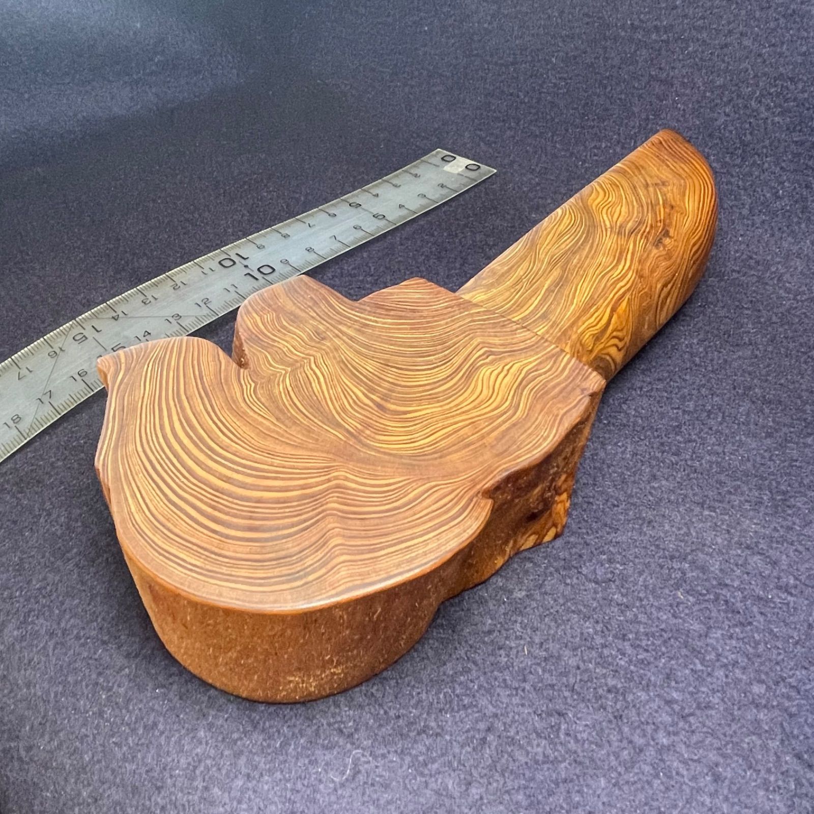 耐久性があり、美しい木目のために工芸品や建築材として、多々利用されてきましたが、1993年に屋久島が世界自然遺産に登録され、2001年には屋久杉の伐採禁止。その後は、土埋木のみ利用されてきましたが、2019年には土埋木も搬出禁止となり、現在では災害復旧支障木などの例外をはぶいて、もはや手持ちにある在庫のみの状況です。