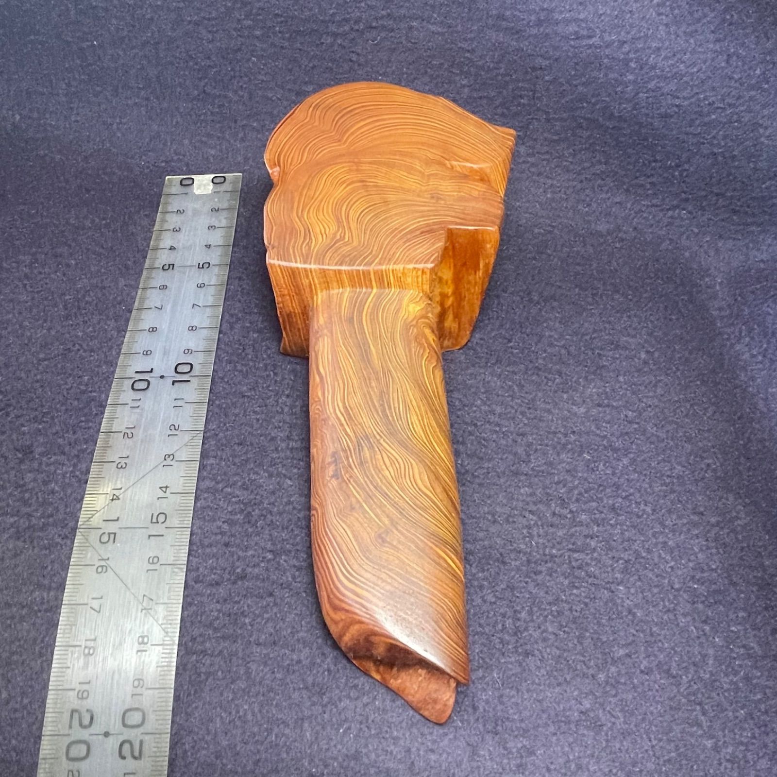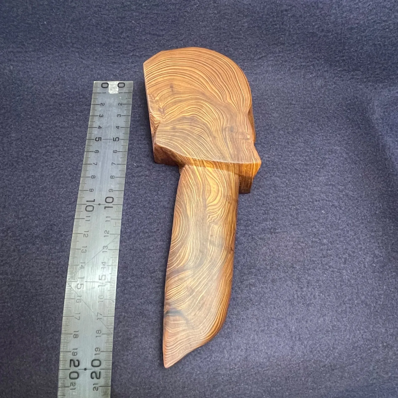 サイズ(最大値)、全長195mm、ヘッド部長さ83mm、ヘッド部幅82mm、ヘッド部厚み53mm、取っ手部長さ112mm、取っ手部幅38mm。寸法は約です。重さ227g。素彫り(無垢)に調理用の亜麻仁油でオイルフィニッシュしました。天然木のため1本、1本に個体差があり、彫り方もちがうため、すべてに品番をつけています。