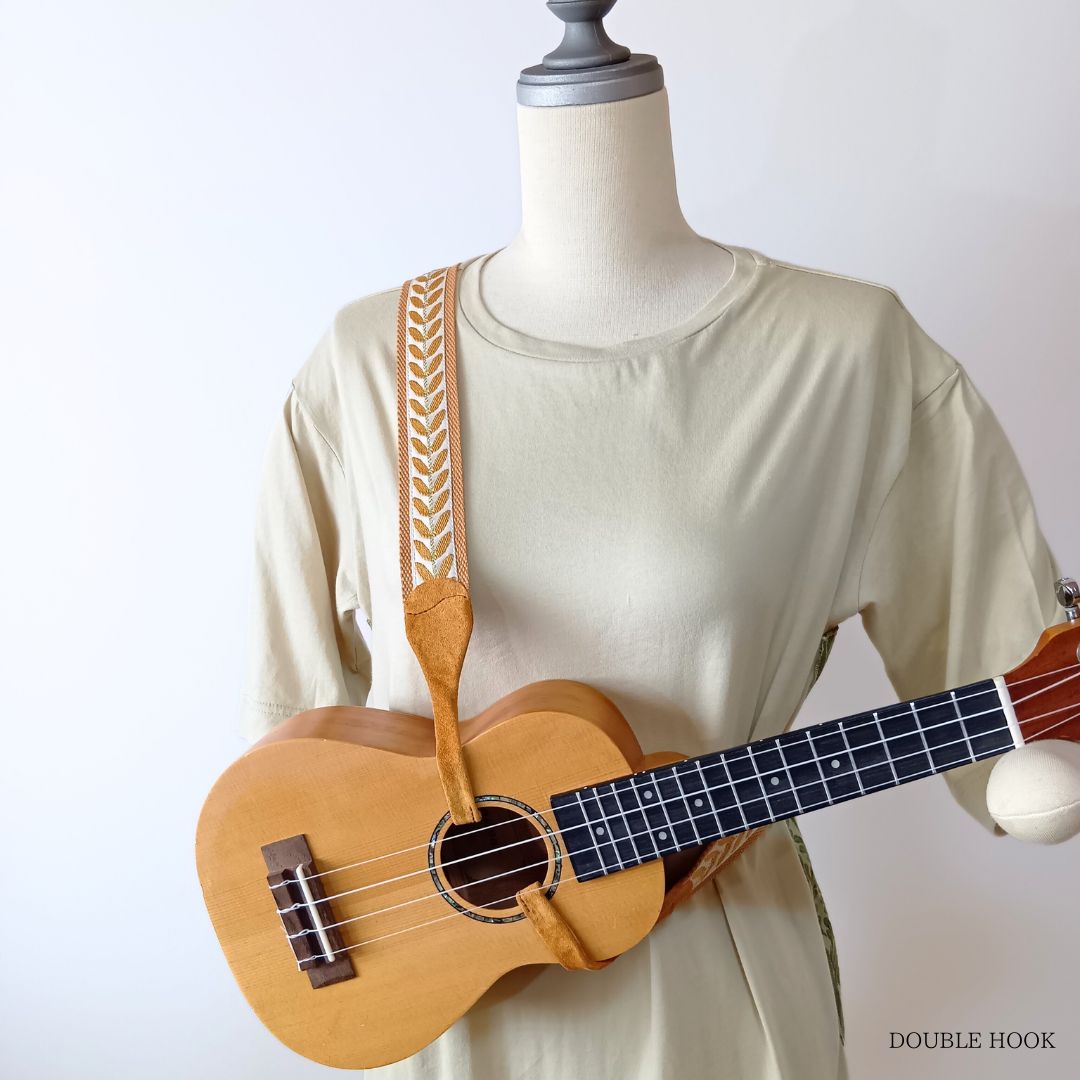 穴をあけずに使えるウクレレストラップ|発表会&プレゼントにおすすめ♪オータムリーフ柄
