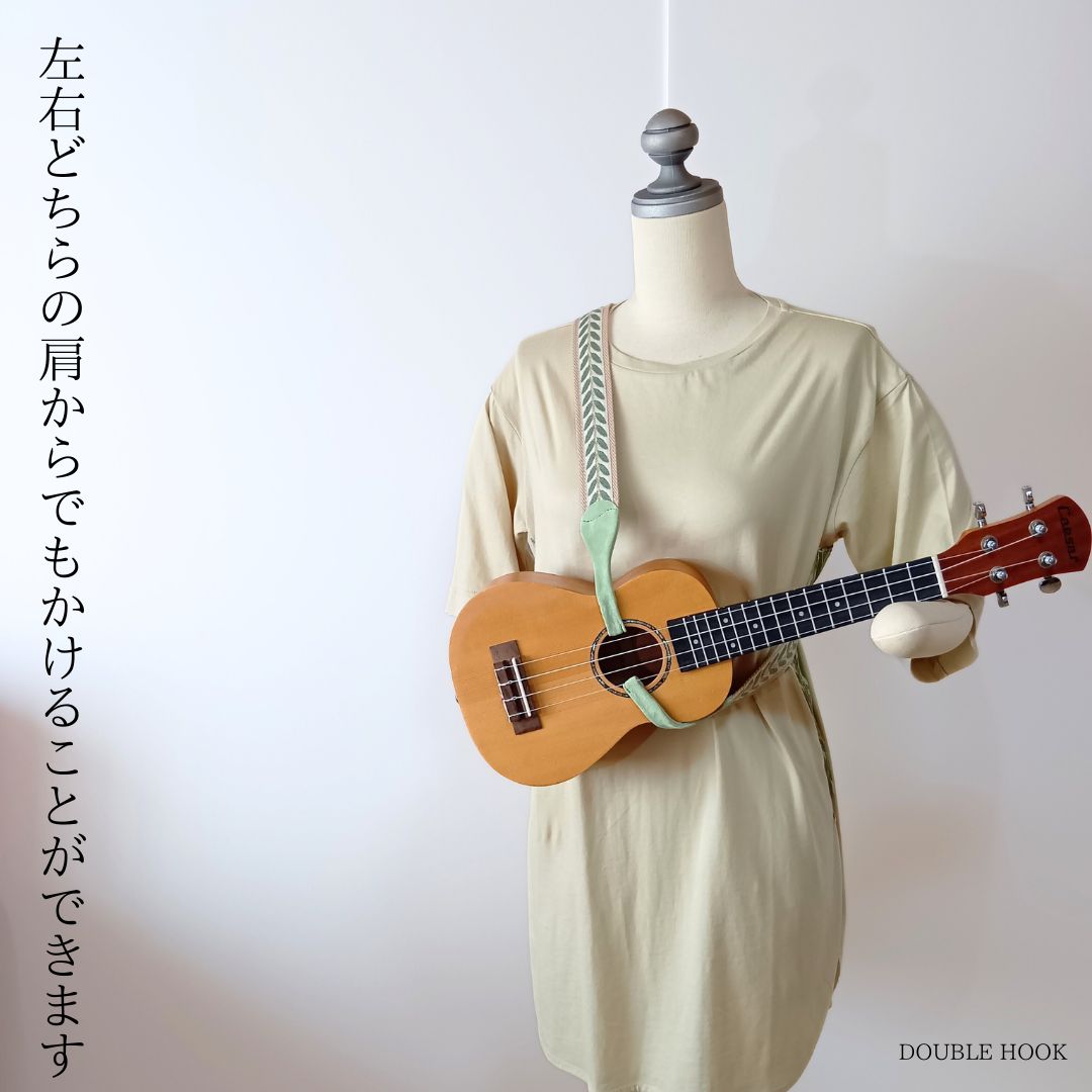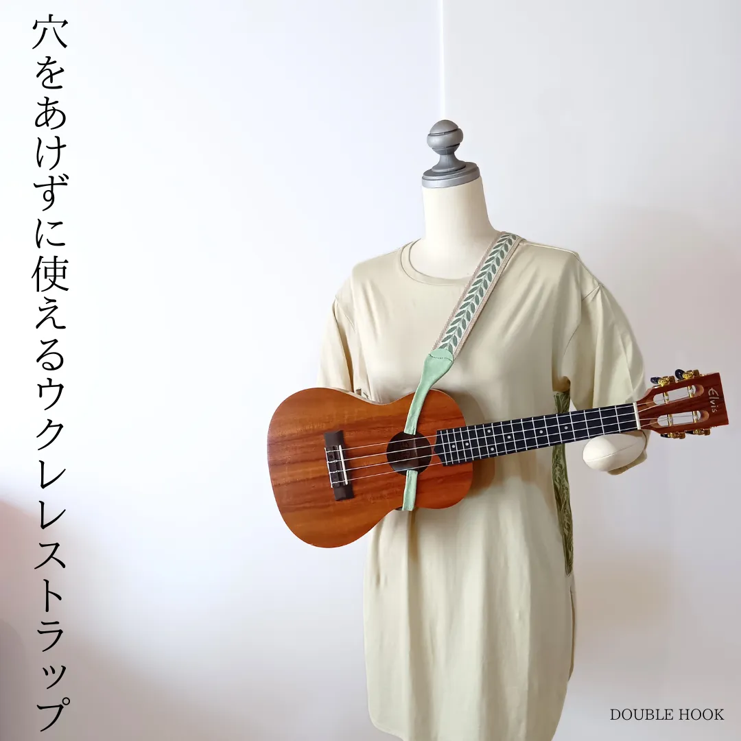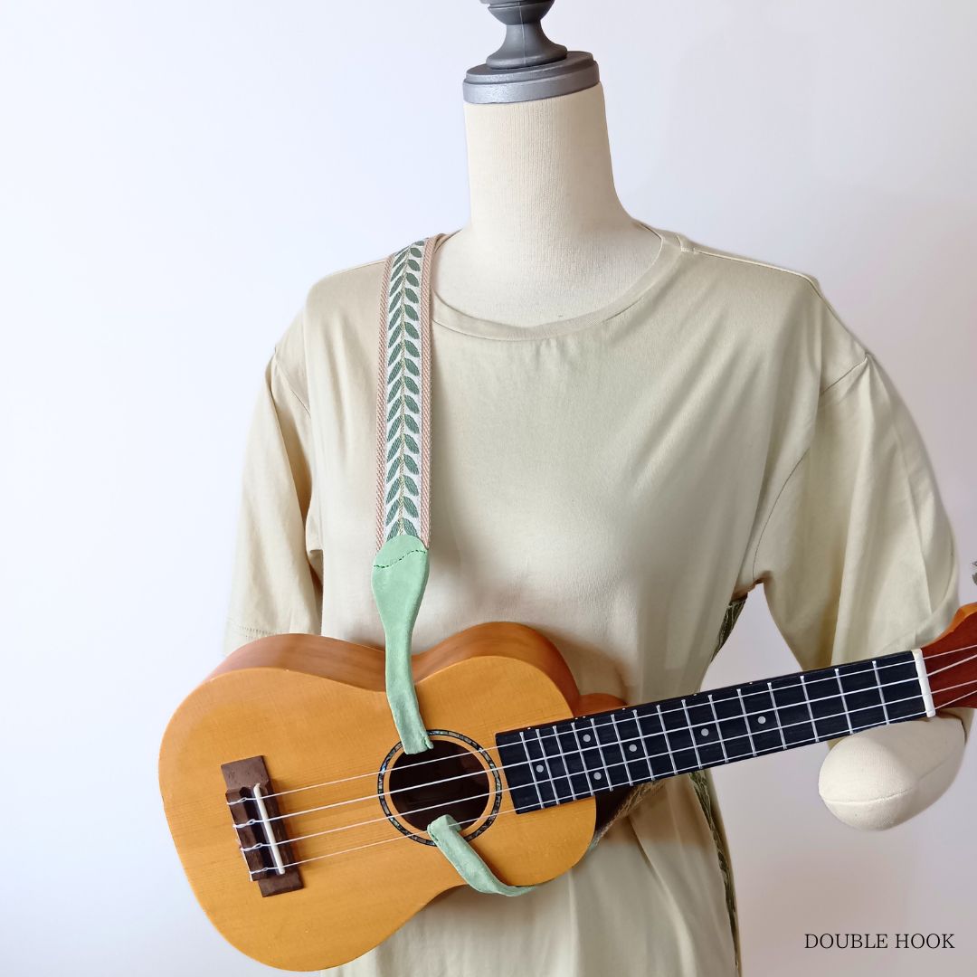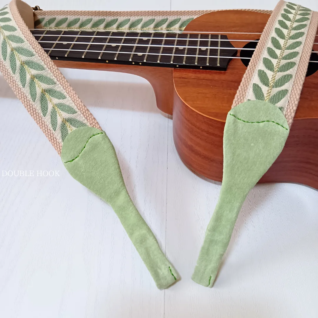 穴をあけずに使えるウクレレストラップ|発表会&プレゼントにおすすめ♪オリーブリーフ柄