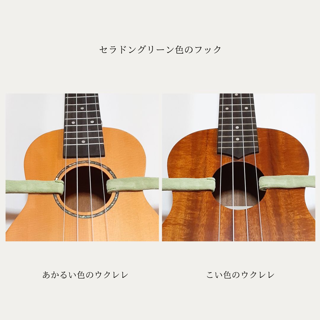 ・フック部分には、ウクレレにやさしくフィットするピッグスエードレザーを使用。
