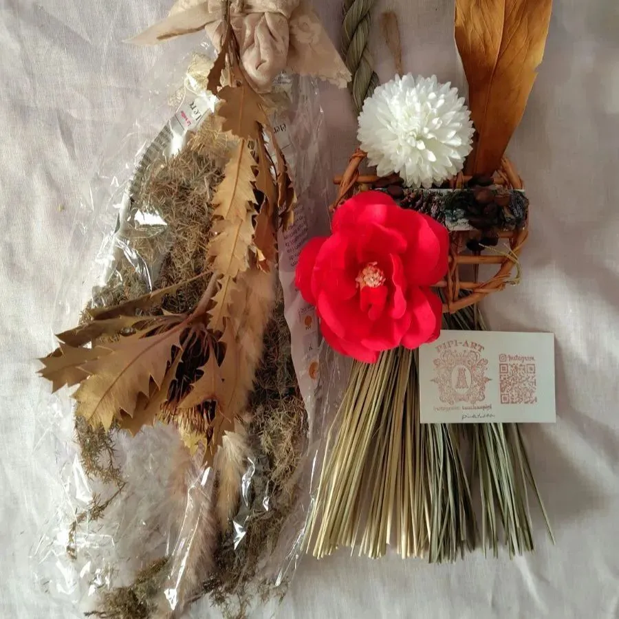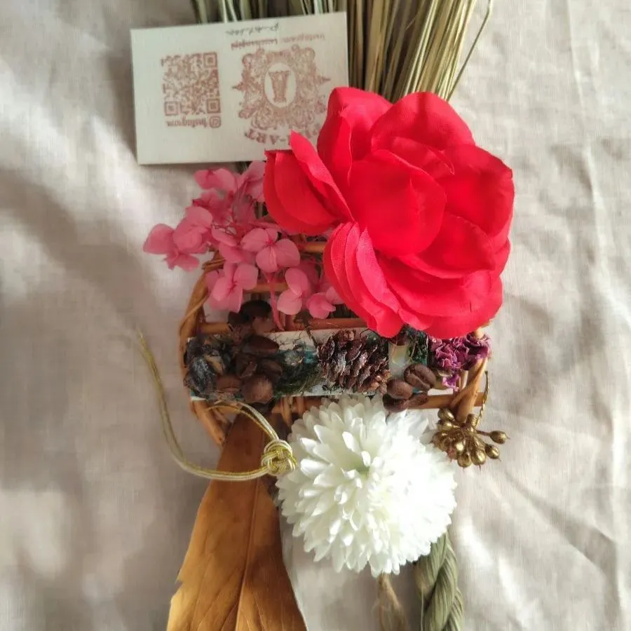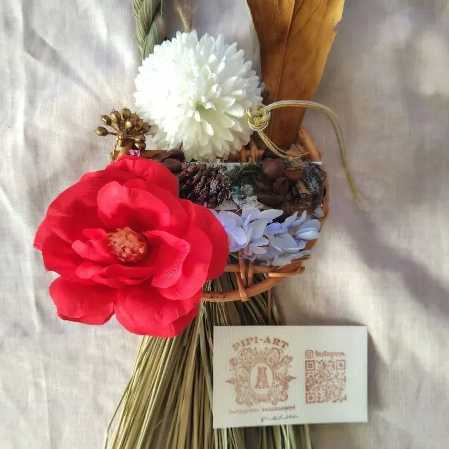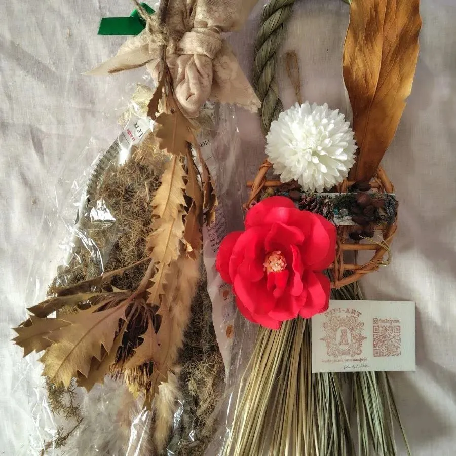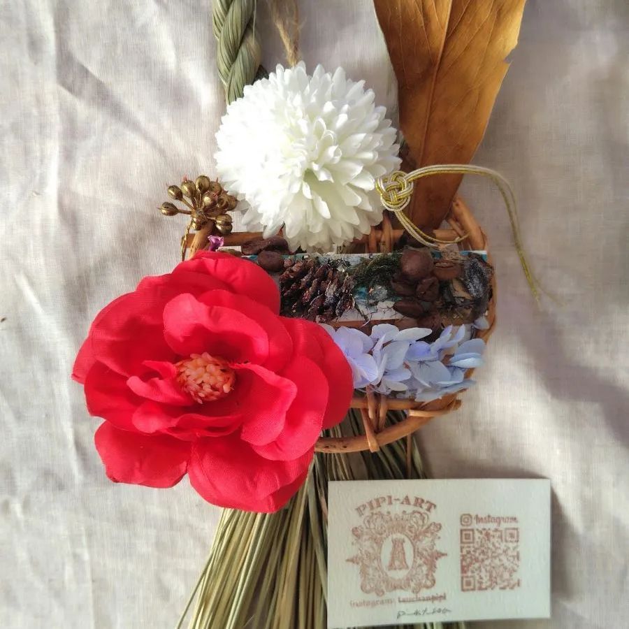 流木 しめ縄リース お正月後はドライフラワーリース 2way