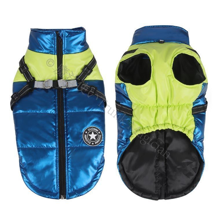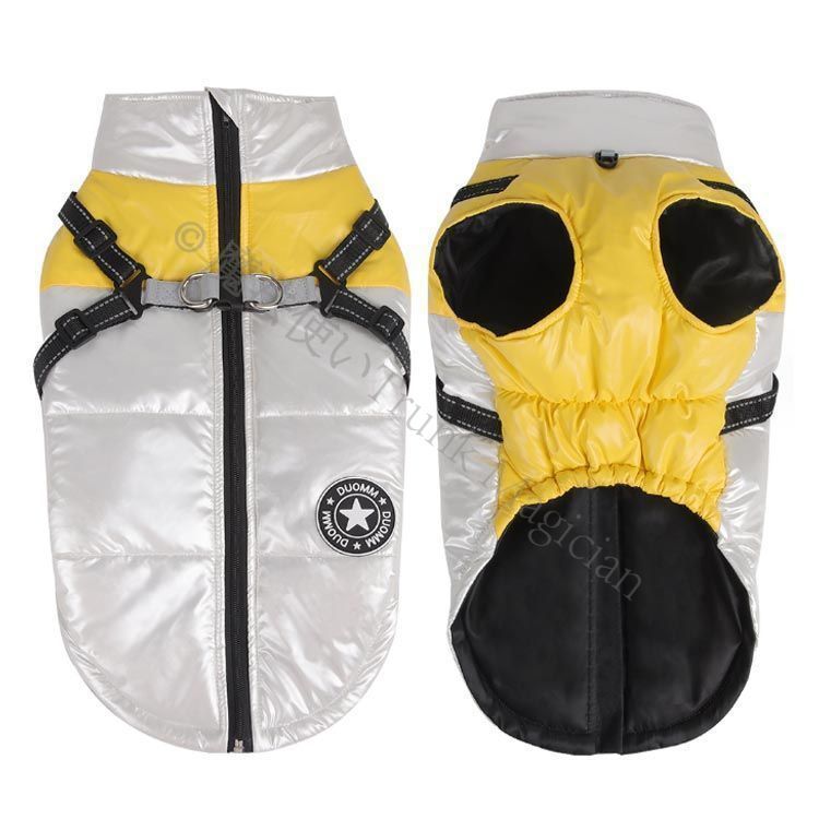 【2XL】胴回り63cm 背丈45cm 首周り45cm おすすめ体重7.5-10kg ※サイズ計測には誤差が生じます。 素材:ポリエステル 色:ホワイト×イエロー ピンク オレンジ×ブラック ブルー×グリーン ブラック S-2XL!背中ファスナーのドッグウェア! お洋服にハーネスが付いているので、お出かけやお散歩もラクラク! 背中のファスナーで簡単着脱!お洋服初心者や苦手なワンコも短時間でお着替えできるのでおすすめ! 表面は撥水加工で、汚れにも強い。清潔するのは簡単、突然の雨でも安心? 夜間反射テープ付きで、愛犬との夜の散歩でも安心できます。 取引の際の注意事項: メルカリ店では、最大10個までしか選択肢を設定できません。 ご希望の色?サイズをご注文後、ご注文番号とともにメッセージでお知らせください。 いただいた内容に沿って、サイズと色を手配いたします。 送料について ?全国送料無料(以下の地域を除く) ?沖縄県、離島地域には別途2,000円の送料がかかります。 ?上記の地域には、商品ページにて別途送料を請求させていただきます。 ご注意事項: ※サイズは手作業での採寸のため、1?110cm程度の誤差が生じる場合がございます。 ※モニター環境や撮影時の光加減により、実際の商品の色味が画像と若干異なる場合がございます。 ※生産工程上、ごくわずかな縫製のズレや糸のほつれ?匂いなどが見られる場合がございますが、品質には問題ございません。 ※イメージ違いによる返品?交換はご遠慮いただきますようお願い申し上げます。