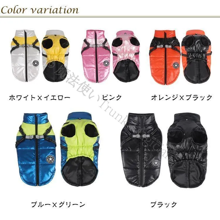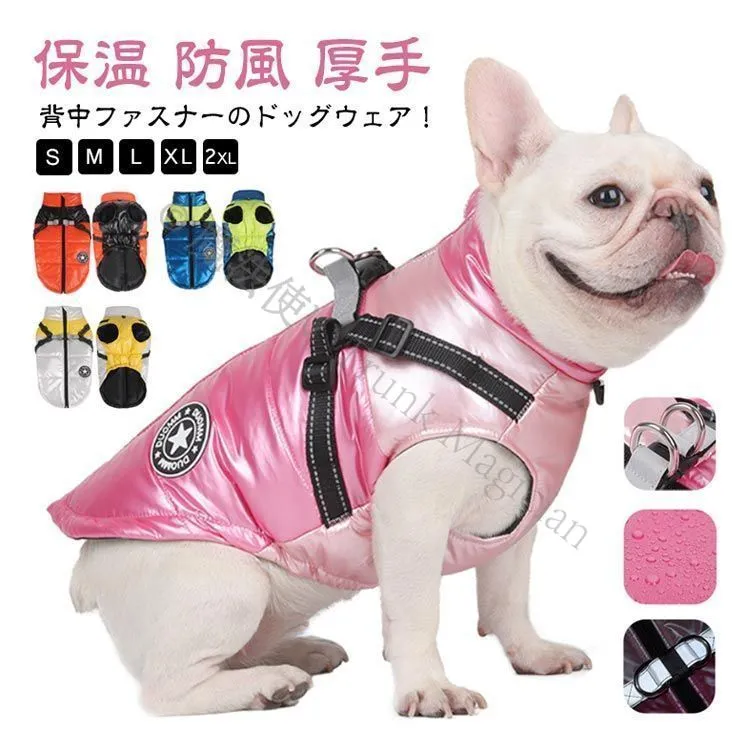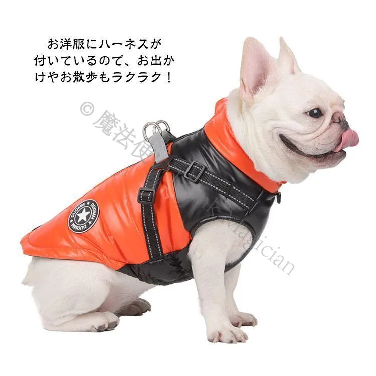 犬 服 冬 犬服 暖かい 秋冬 ハーネス 一体型 防寒 ジャケット ジャンパー 背中開き ファスナー 着せやすい 袖なし ダウン風 アウター 保温 防風 厚手 秋 冬 暖かい ドッグウェア 中綿 コー CCQF1125P108