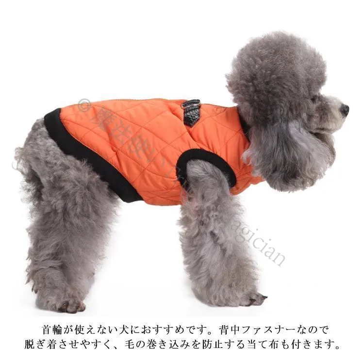 ドッグウェア 秋 冬 背中開き キルティング ジャケット ベスト 犬服 ハーネス 小型犬 中型犬 裏起毛なし 袖なし 防寒 軽量 撥水 着脱簡単 背中ファスナー付き ジャンパー 中綿ジャケ CCQF1125P107