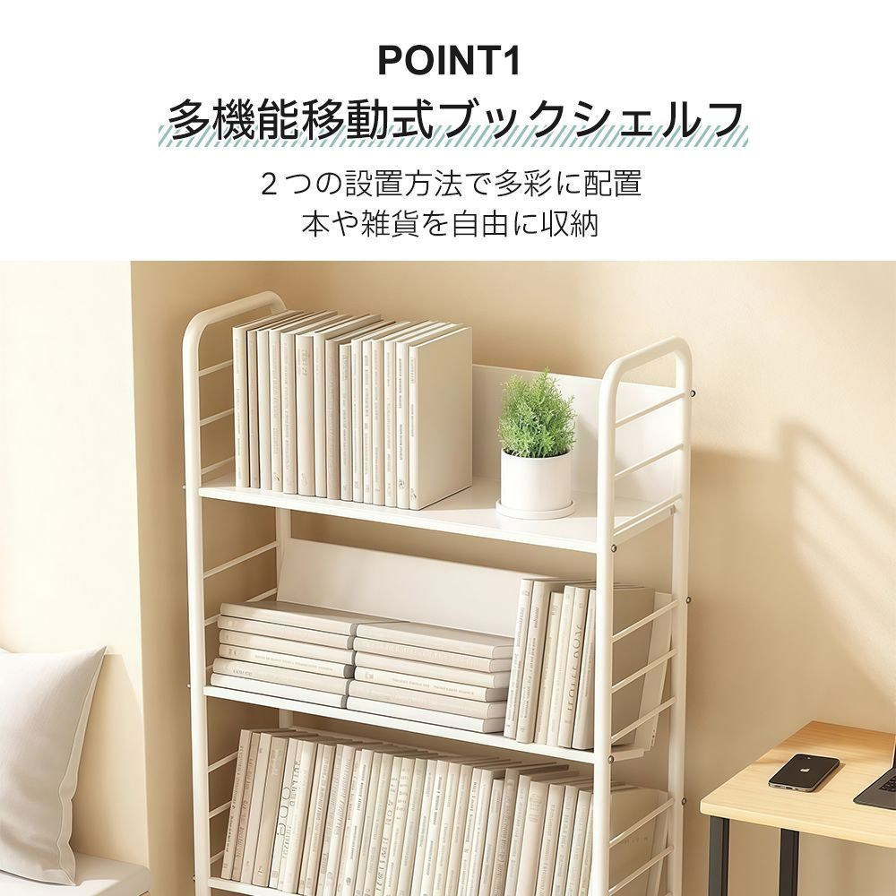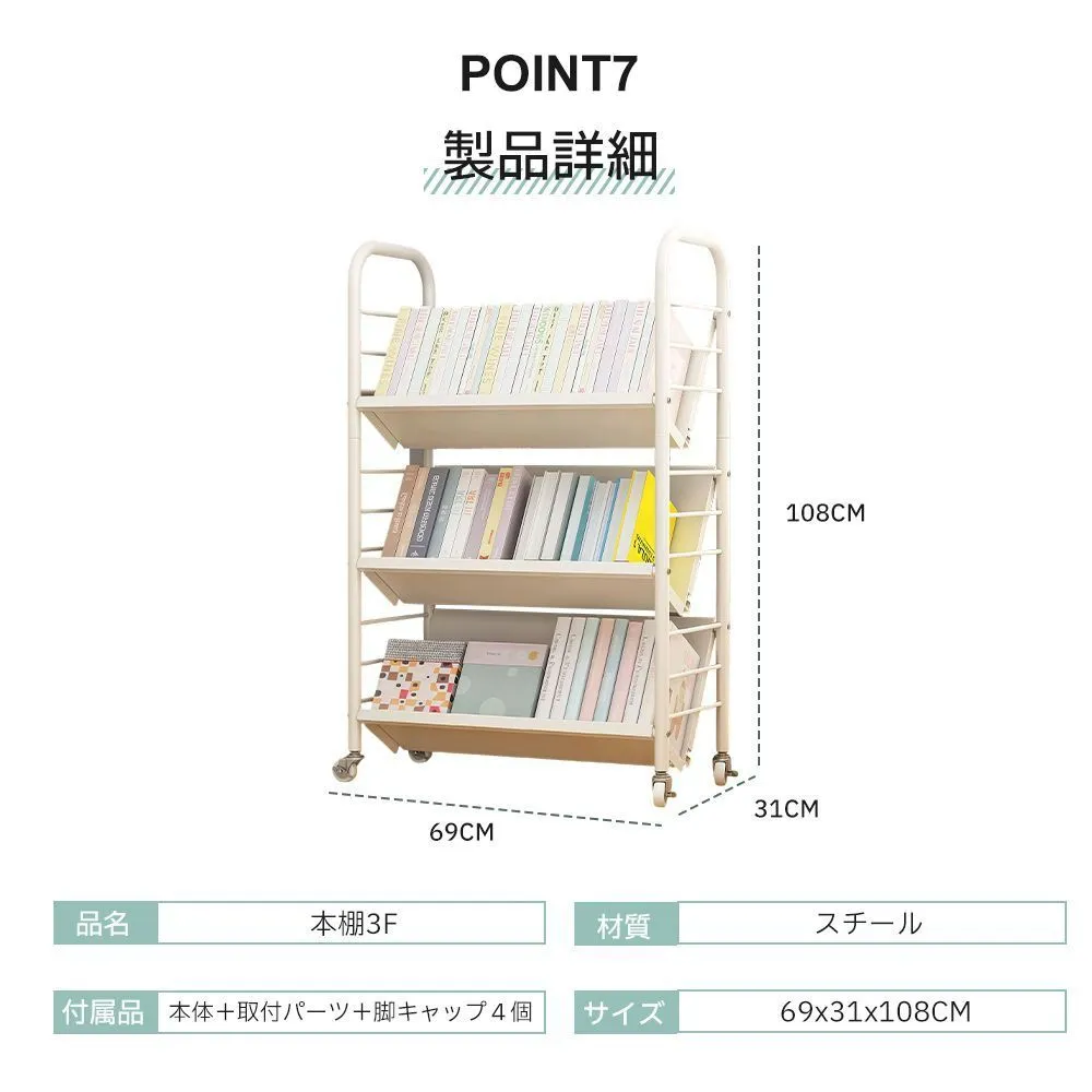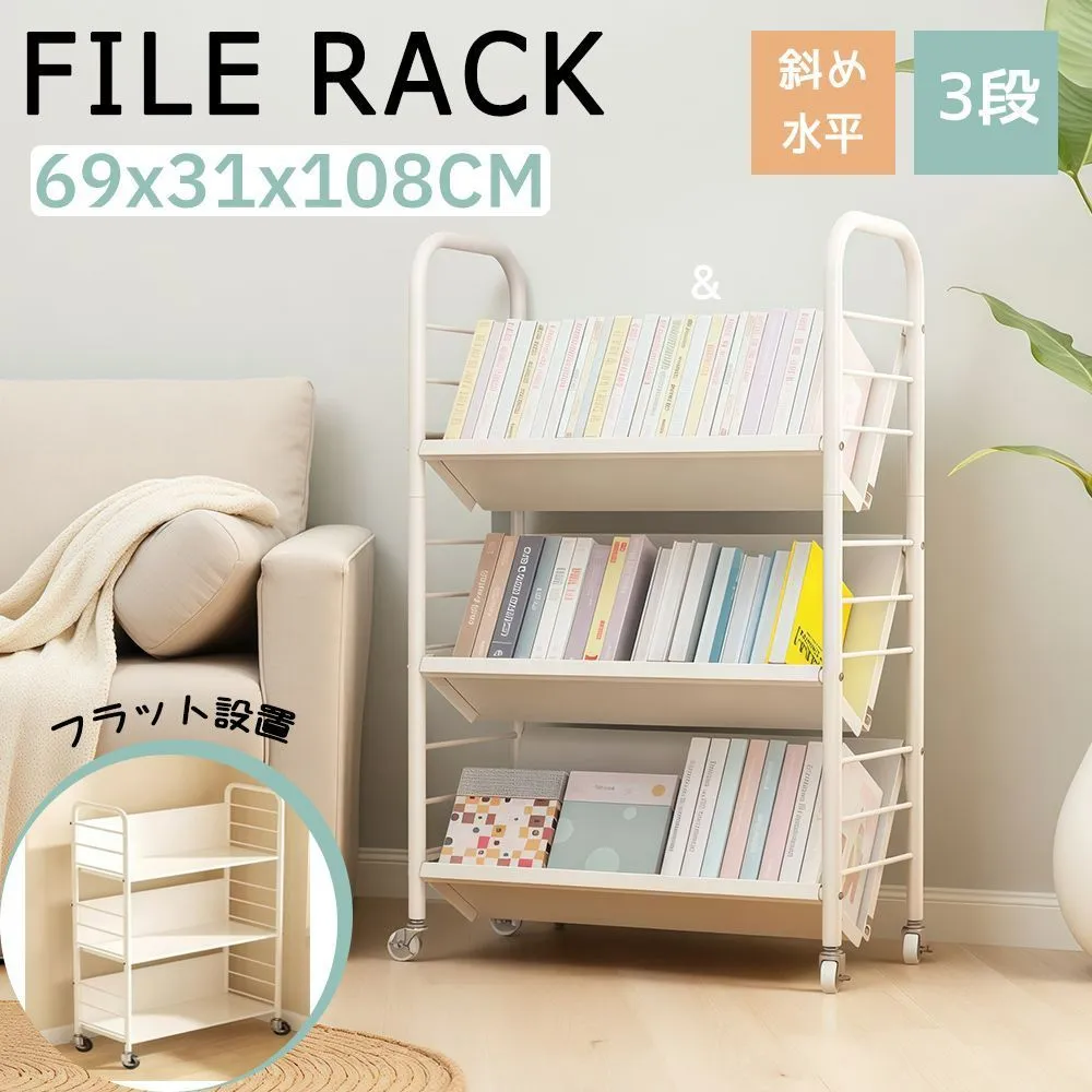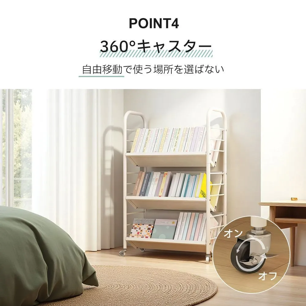 移動式 ブックシェルフ スチールラック 本棚 3段 多機能 フック付き キッチンラック コンパクト 幅69cm 省スペース キッチン 書斎 リビング オフィス 収納ラック 雑貨棚 おしゃれ 資料整理 書類棚 隙間収納 絵本漫画 雑誌 学校デスク 子供部屋