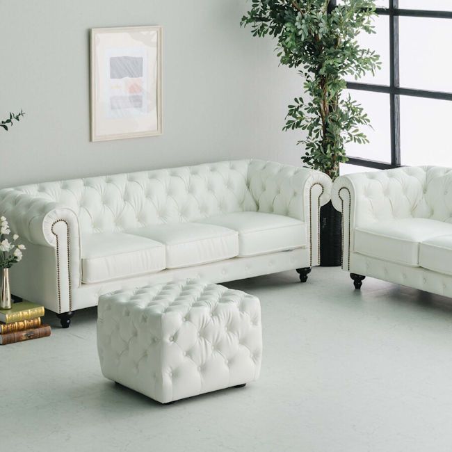 チェスターフィールドタイプPVCマルチスツール幅55cm オットマン スツール(1334)