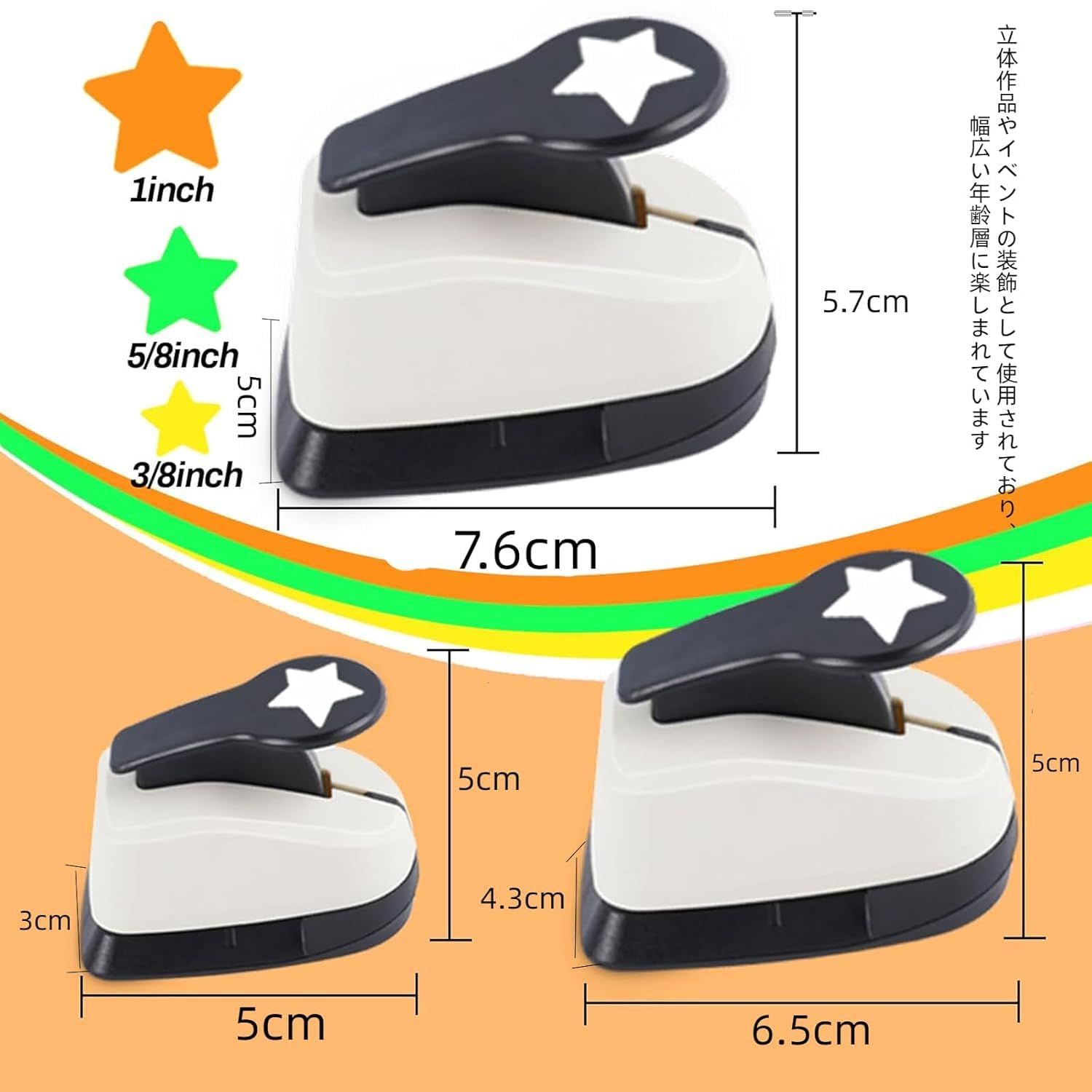 サイズ:9mm:5x3x5cm 重量:28.5g,16mm:6.5x4.3x5cm 重量:51.2g,25mm:7.6x5x5.7cm 重量:90.9g,手軽で簡単な紙専用の型抜きパンチです。誰でも簡単に複雑な絵柄を抜くことができ、立体作品やイベントの装飾として使用されており、幅広い年齢層に楽しまれています。