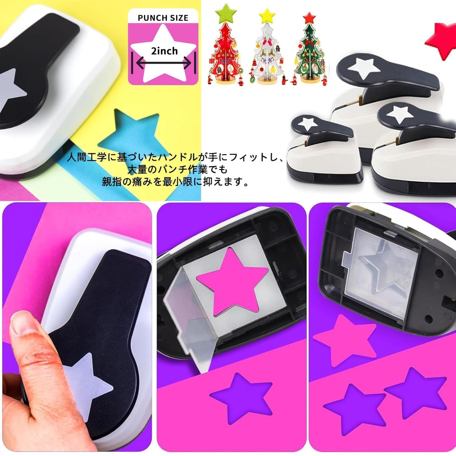 工芸品に最適:この特別にデザインされたパンチは、簡単な操作、紙の打ち抜き、DIYスクラップブック、グリーティングカード作り、子供のアートワークに最適、ギフトカードや年賀状、オリジナルにアレンジしたりと、様々なハンドメイド作品にご利用いただけます。子供手作りの工芸品にも最適です。