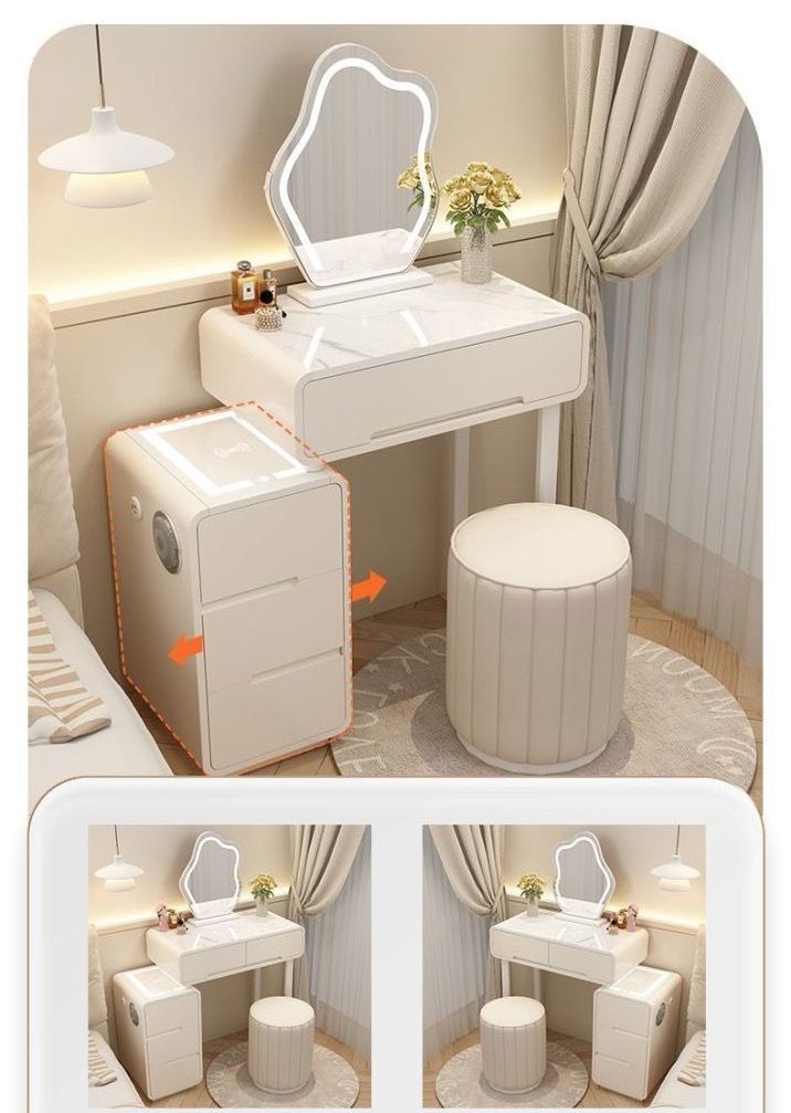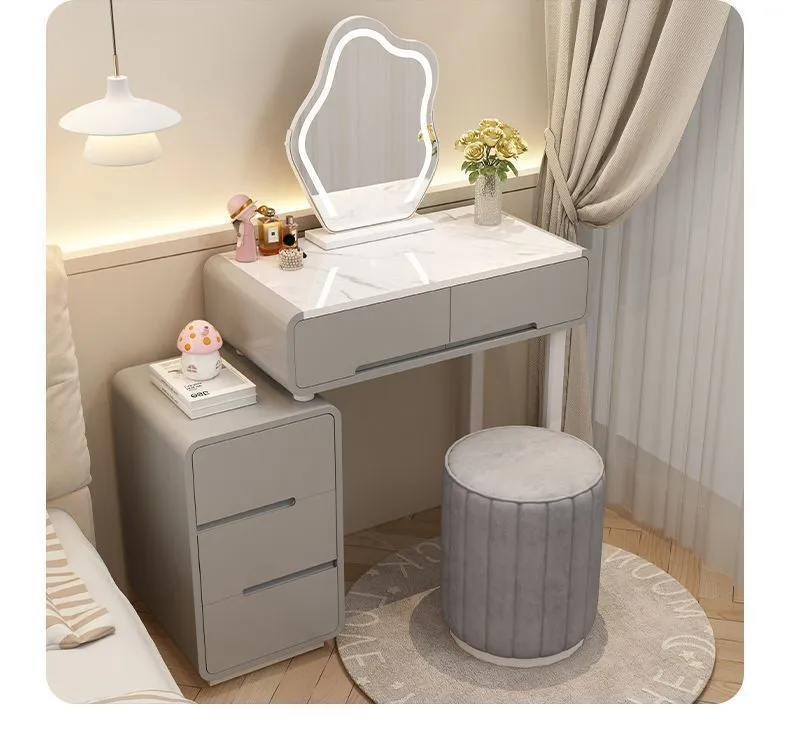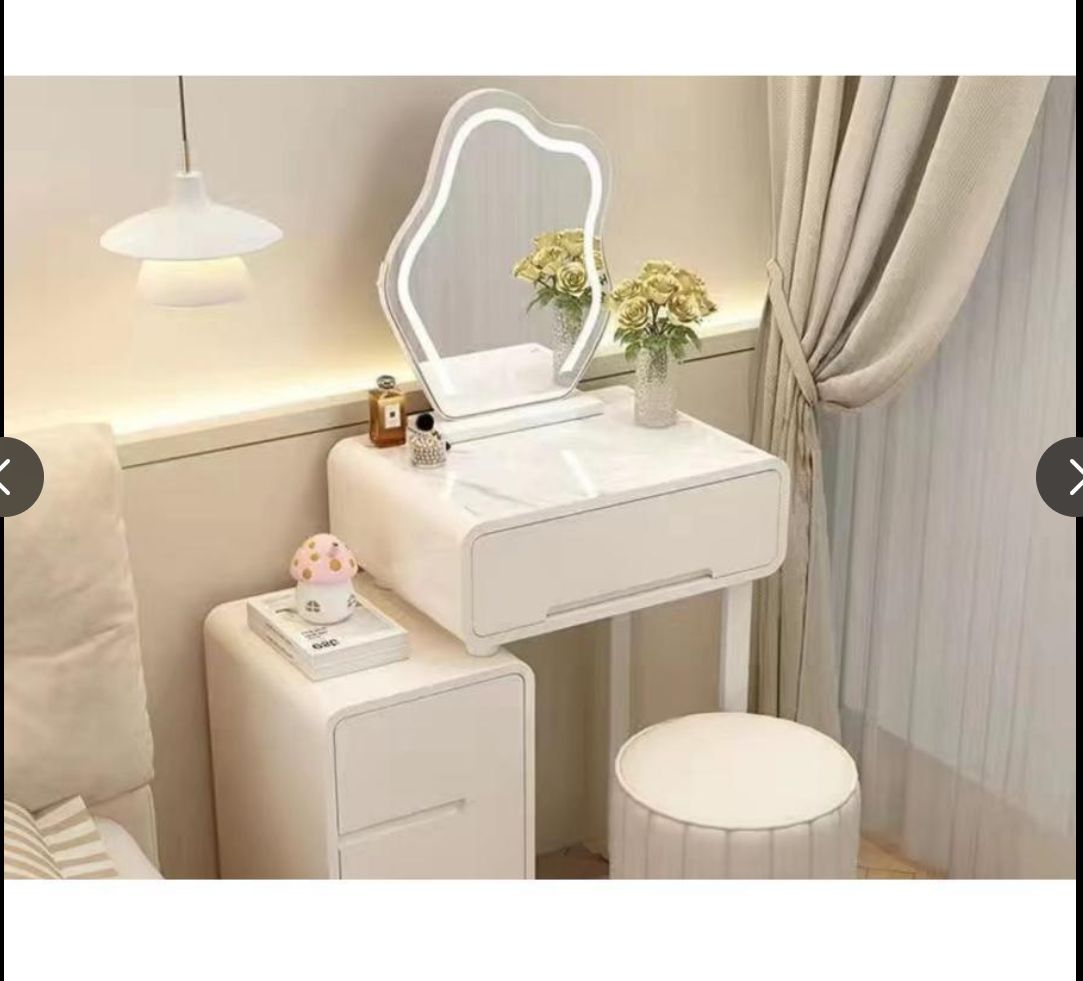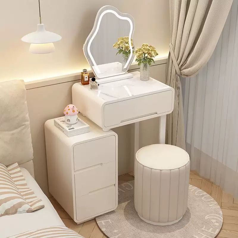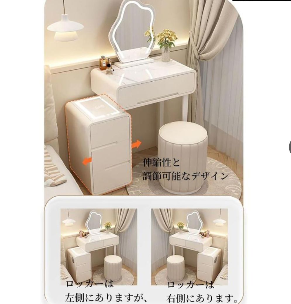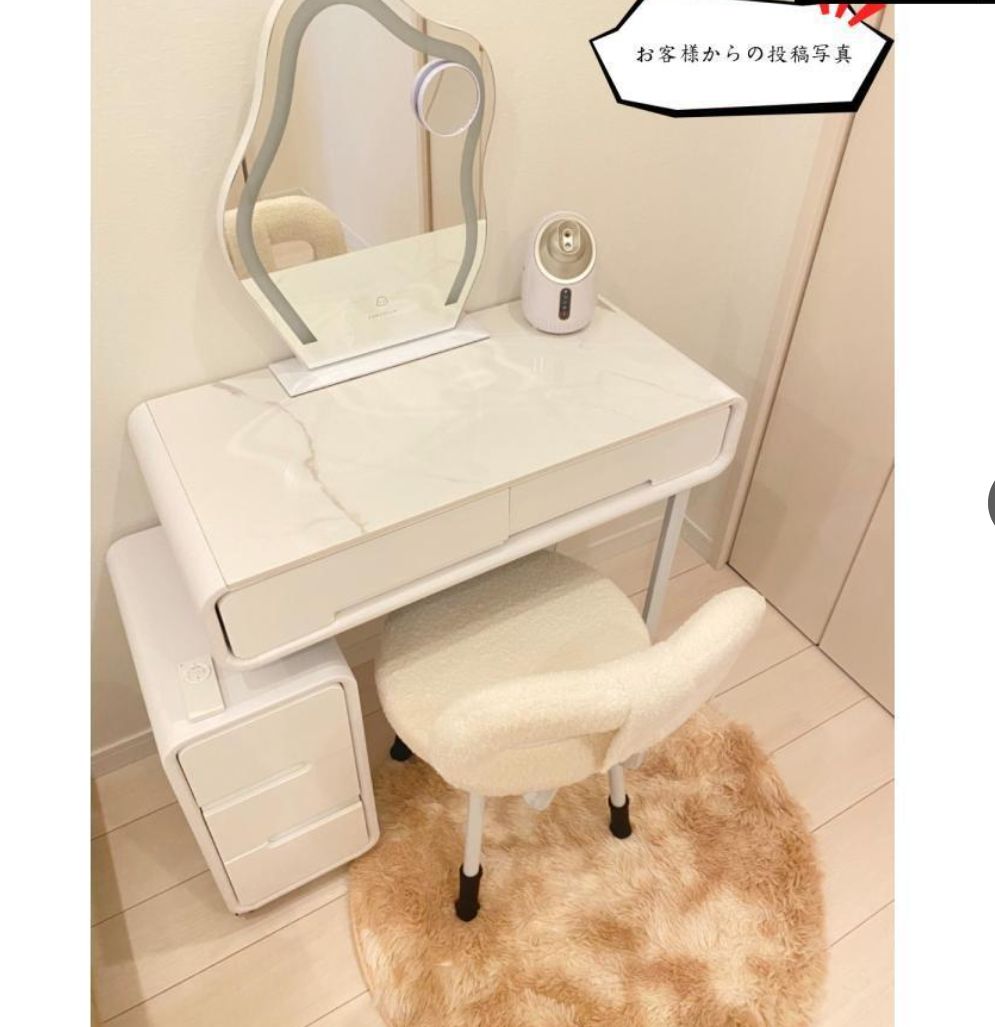 大好評☆ドレッサー 女優ミラー オシャレ 割引キャンペーン 白 北欧風 鏡台 自社製品 お姫系 大理石天板 レザー調 テーブル幅80cm チェスト LEDミラー スツール 寝室