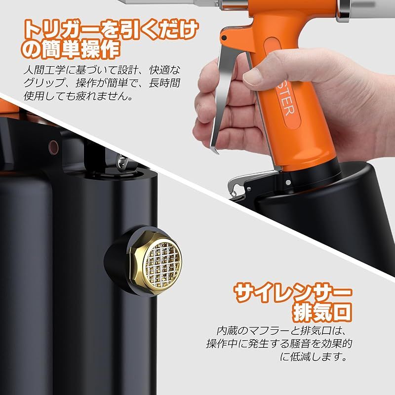 【エアーリベット】空気圧駆動設計、より省力化、より耐久性があります。人間工学に基づいて設計、快適なグリップ、操作が簡単で、長時間使用しても疲れません。
