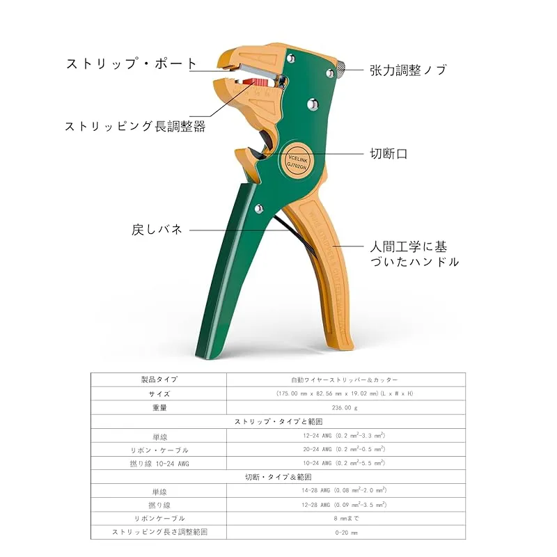 【商品詳細】 ブランド:VCELINK 商品種別:ワイヤーストリッパー 商品名: