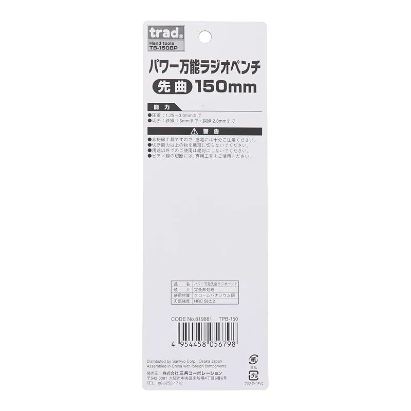 【迅速発送】三共コーポレーション trad パワー万能先曲ラジオペンチ 150mm TB-150BP 0