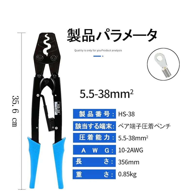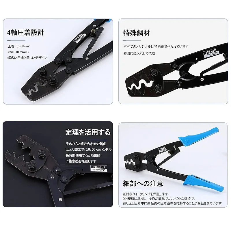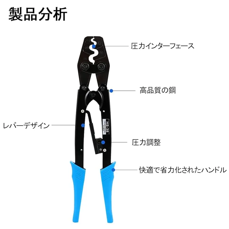【迅速】Odowalker 圧着ペンチ 圧着電工ペンチ 裸圧着端子かしめ工具 裸圧着スリーブ 圧着工具 圧着端子 電工ペンチ ペンチ 対応 HS-38/5.5-38? 製造元:Odowalker 商品番号:HS-38 色:ブルー