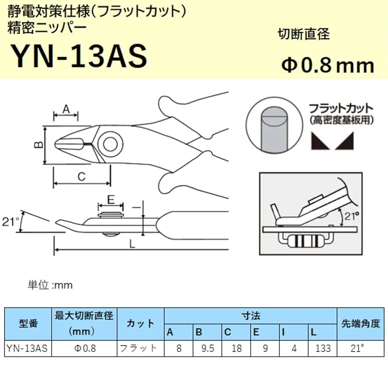 【迅速発送】太洋電機産業(goot) 精密ニッパー イタリアピジコム社製 静電対策品 YN-13AS 1