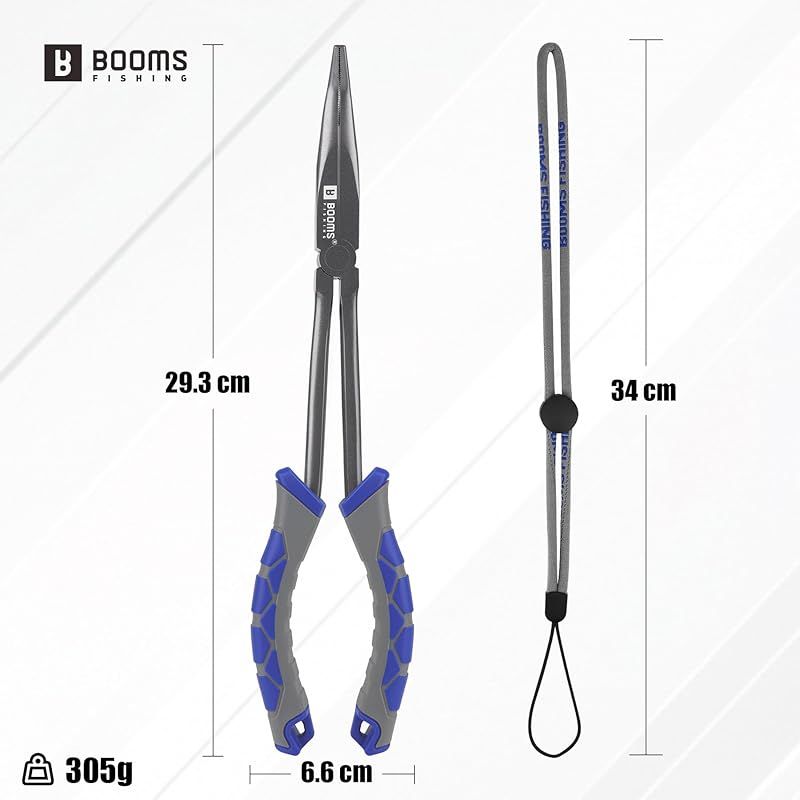 【迅速】Booms Fishing XW11 ロングノーズプライヤー ラジオペンチ 極細 海釣専用 針はずし 先端カーブ 全長28cm 落下防止ストラップ付き 製造元:Booms Fishing 商品番号:BAFTXW1111B1J 色:ブラック