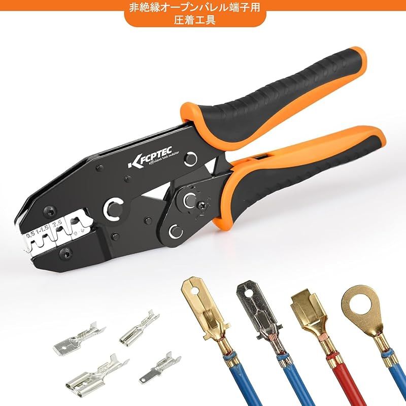 【迅速発送】KF CPTEC 04B ラチェット式圧着ペンチ 非絶縁オープンバレル端子用 ? JST、Molex、TE、AMP、Deutsch コネクタ対応 ? AWG 22-10 (0.5?6.0mm2) 調整可能ワイヤクリンパー 0