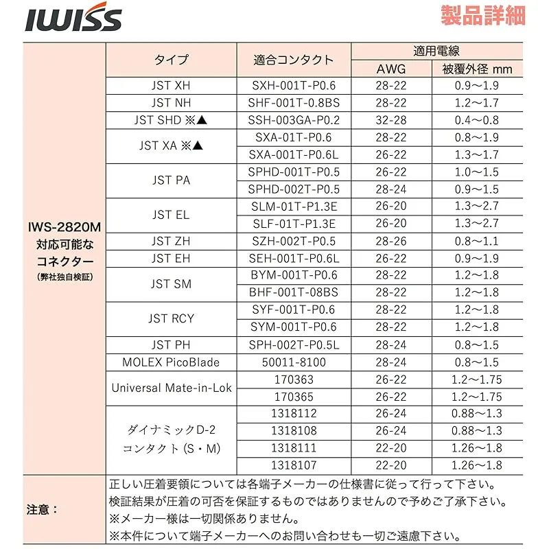 【商品詳細】 ブランド:IWISS 商品種別:圧着ペンチ 商品名: