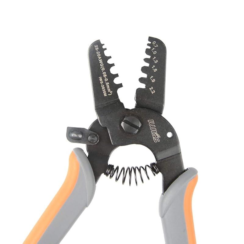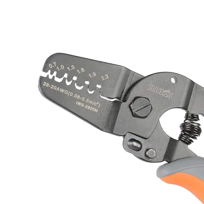 【迅速】アイウィス(IWISS) 精密圧着ペンチ オープンバレル端子用 0.08-0.5mm2極小端子用 IWS-2820M 製造元:IWISS 商品番号:IWS-2820M 商品内容:極小端子用 IWS-2820M 色:orange,grey,black