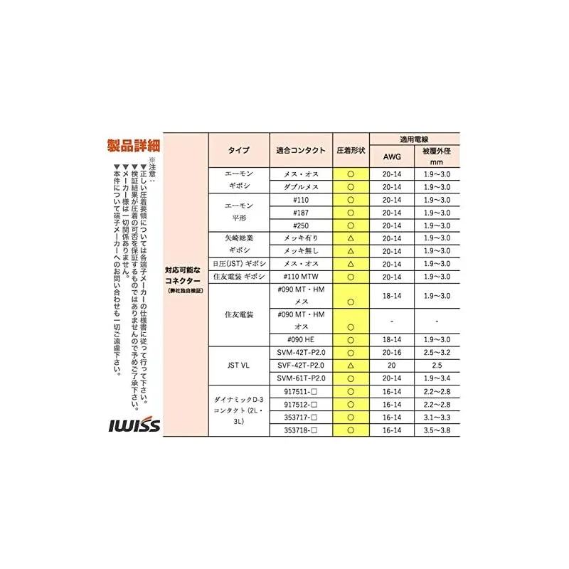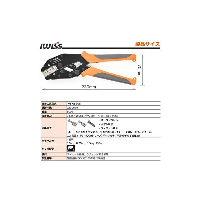【商品詳細】 ブランド:IWISS 商品種別:圧着ペンチ 商品名: