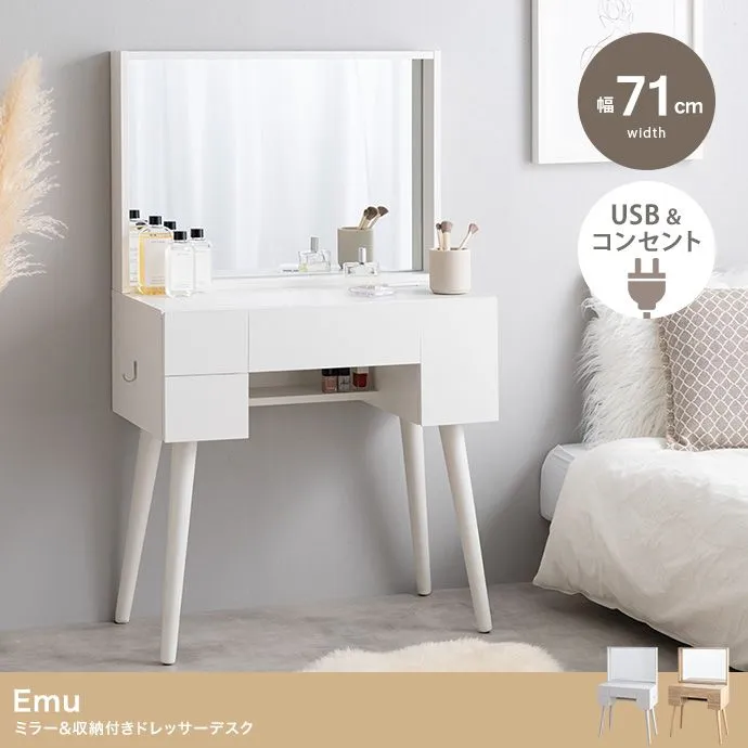 【送料無料】Emu ミラー&収納付きドレッサーデスク【幅71cm】