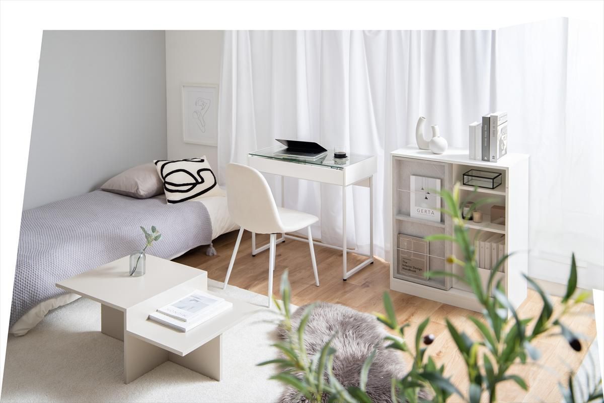 お気に入りのコスメやアクセサリーがディスプレイできる、ショーケースのような美しいガラスデスク