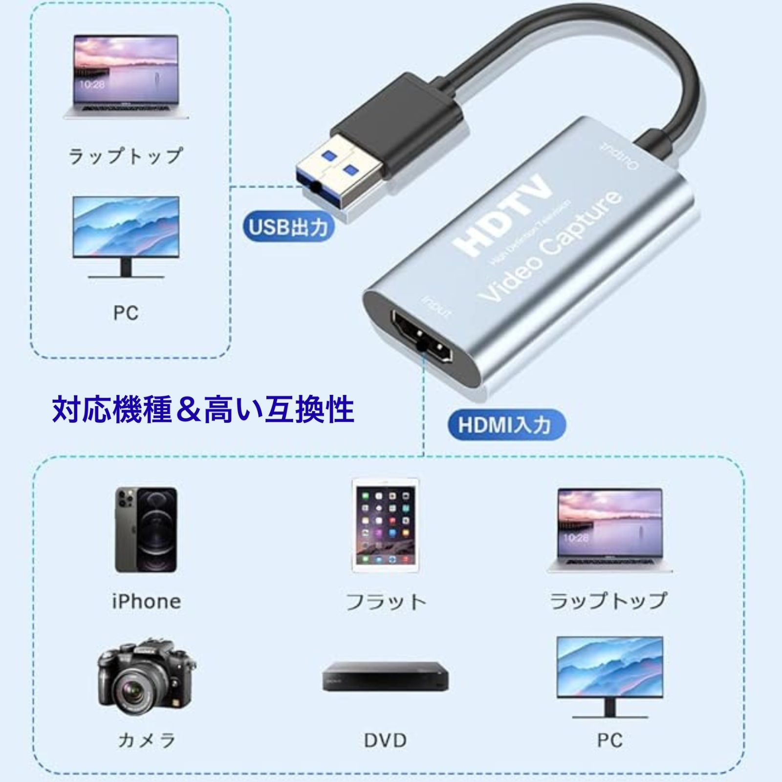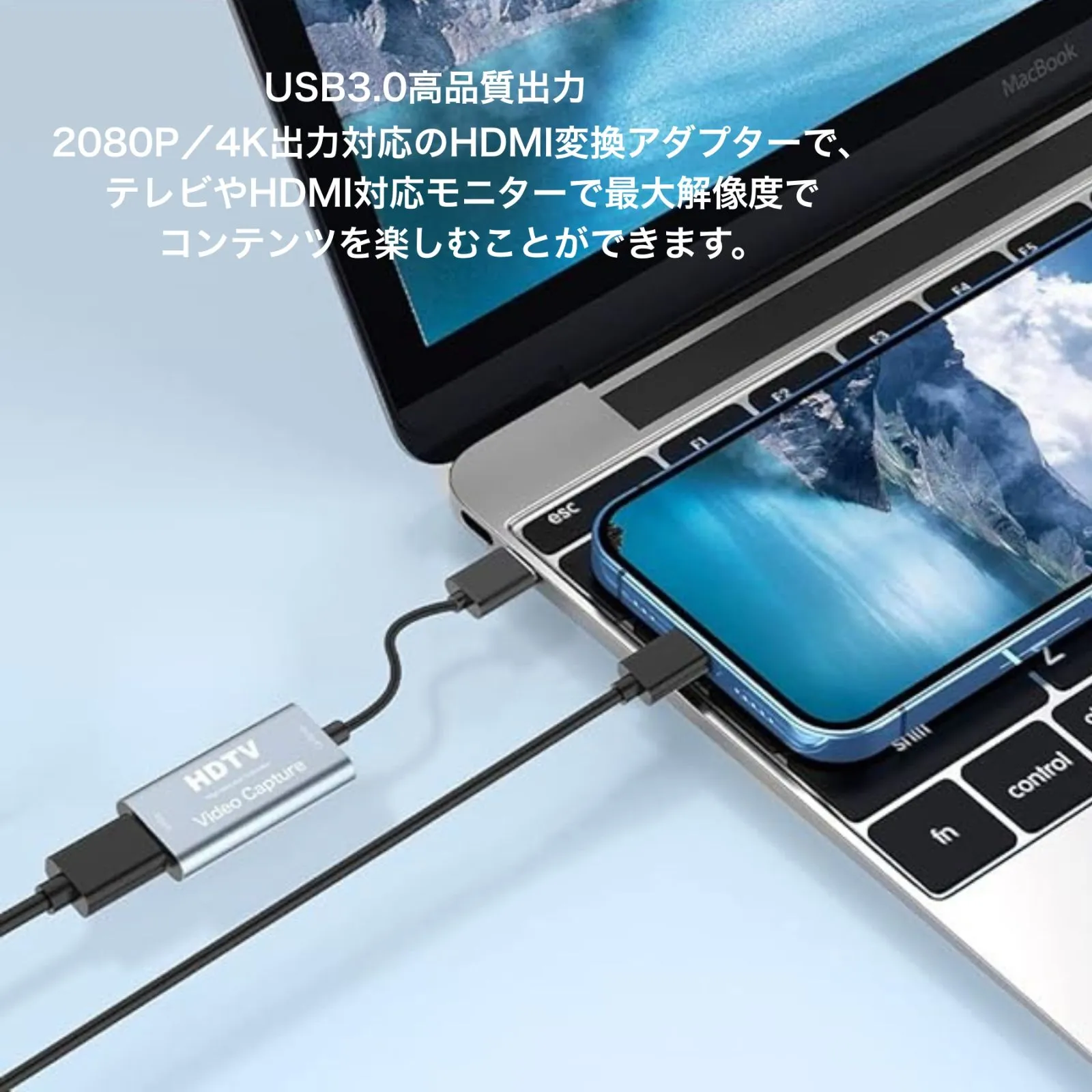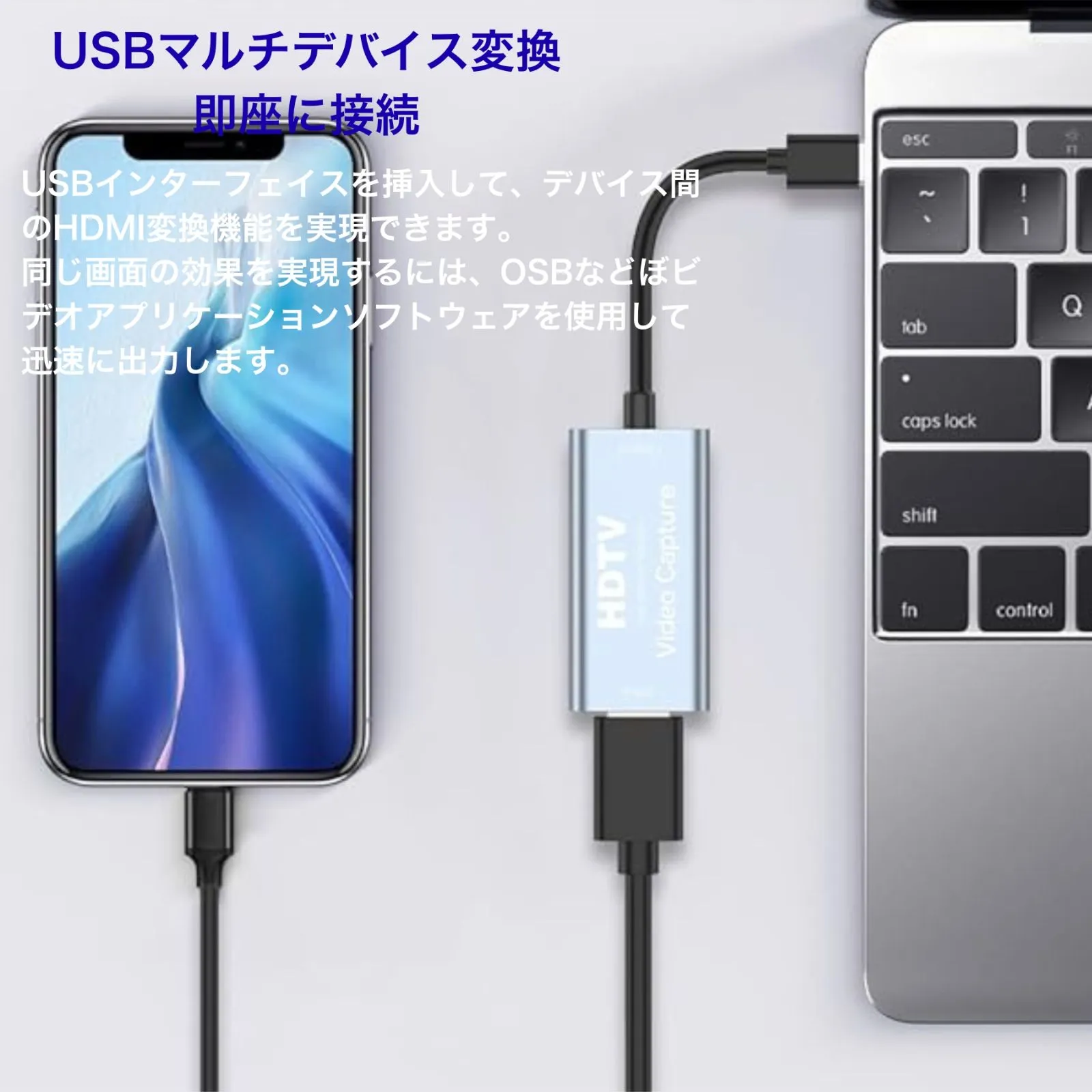 USB-C & HDMI キャプチャーボード 変換アダプタ HD画質録画 小型軽量 低遅延 日本語取扱説明書付