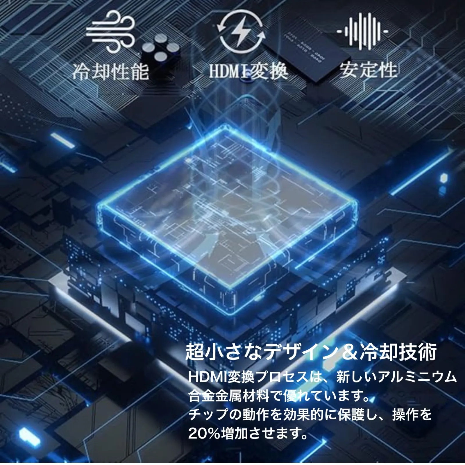 ■ プレミアム設計 小型&軽量で持ち運びラク。 アルミ合金ボディで放熱性が高く、長時間使用でも安定。 HDMI入力ケーブルを使えばさまざまな機器と接続できます。